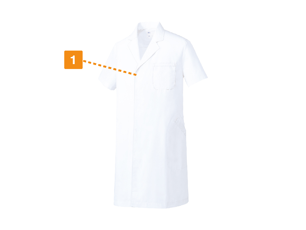 医療現場での様々なシーンを想定し設計されたコート。使い勝手や安全性をアップする機能面も充実しています。胸と両脇に計3ヵ所のポケットが配置され、持ち物を仕分けてすっきりと収納可能です。胸ポケットに付属するペン差しや、物が取り出しやすい斜め開口の脇ポケットなど、さりげなく使い勝手をアップするディテールもポイント。また、衛生面では業務用の繊維製品を対象とした制菌加工済みのSEKマークの認証を受けており、安全で清潔な作業を可能にしています。さらに生地は防汚加工が施されているので、汚れが付きにくくお手入れも簡単。毎日のストレスを軽減し、安全性を高めてくれるウェアです。
