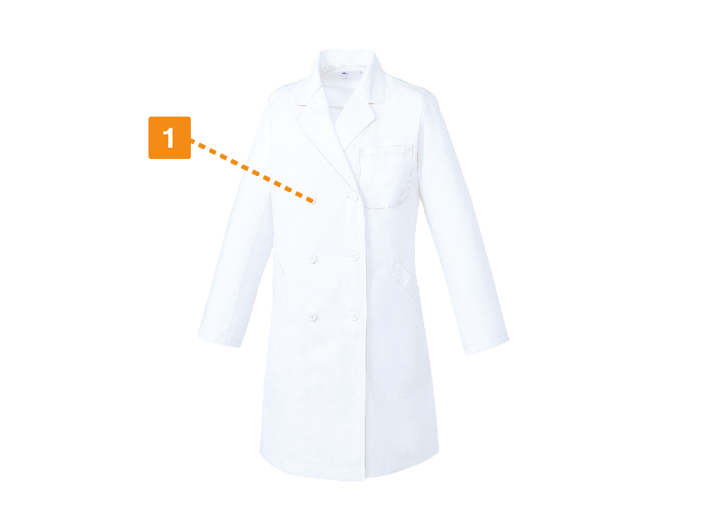 動きやすさだけでなく、医療現場での使い勝手にもこだわって設計されたコートです。収納面も充実しており、胸と両脇の3ヵ所にポケットが配置されています。胸ポケットは便利なペン差し付きで、とっさのメモなどもスマートに対応できます。また、衛生面でも優れており、業務用の繊維製品を対象とした制菌加工済みのSEKマークの認証を受けています。人体に有害な菌を抑え、安全に着用いただける一着です。さらに、生地には防汚加工が施されているので、日常での汚れが付きにくい性質も。毎日を安全かつ清潔にお過ごしいただけます。