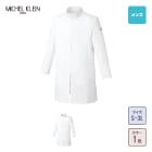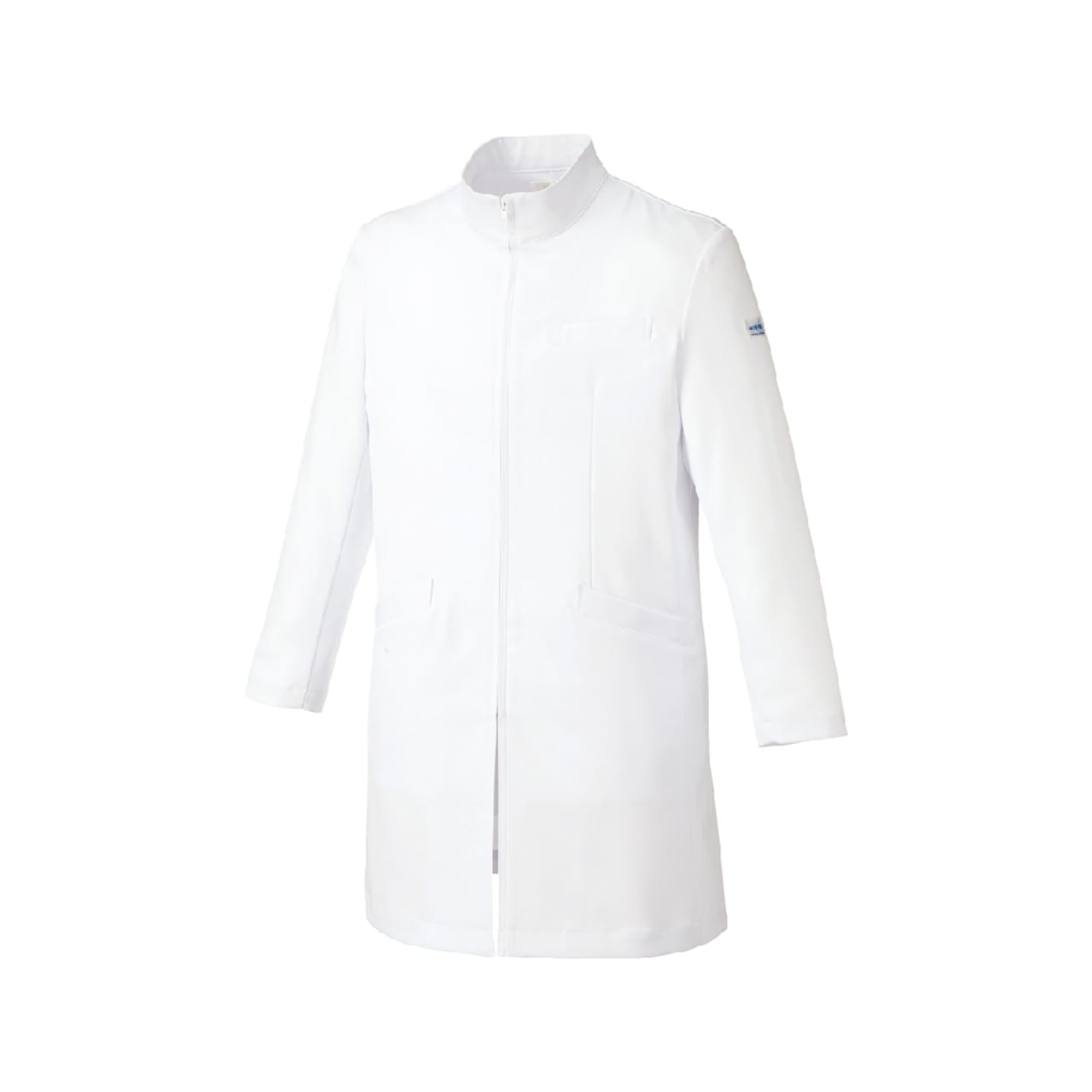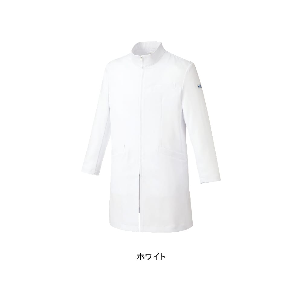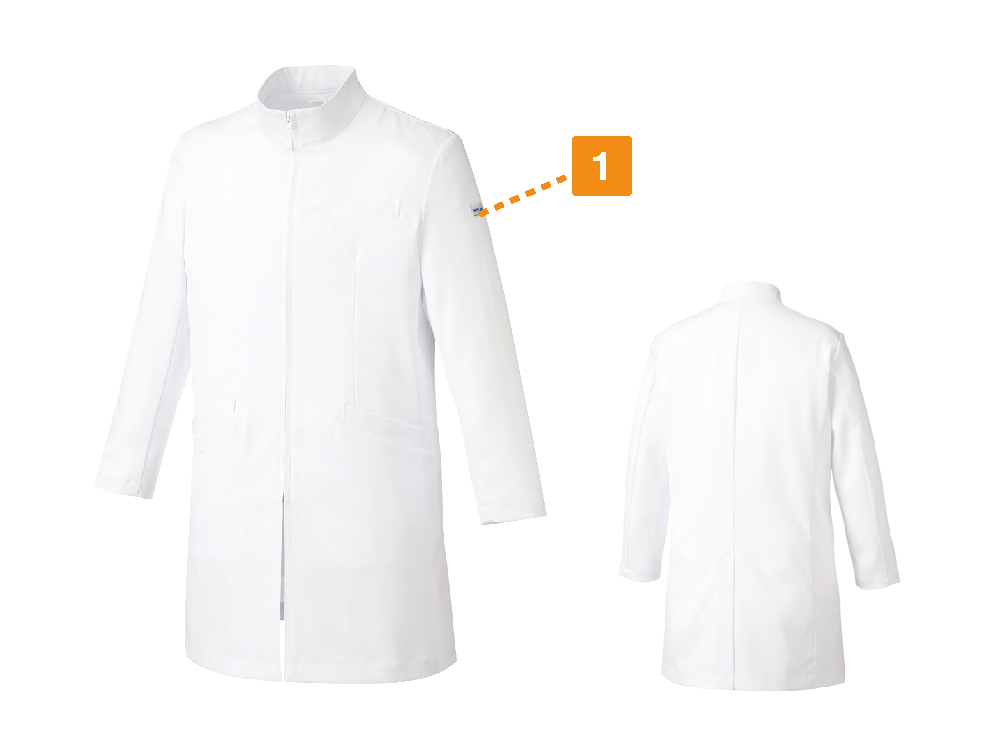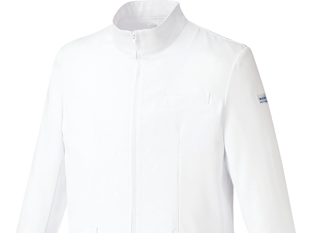 スタイリッシュなスタンドカラーデザインを採用したドクターコートです。一般的なドクターコートよりも先進的なイメージで、プロフェッショナル感のある洗練された雰囲気を演出します。またボタンを使用せず、ファスナーで開閉する仕様になっているのもポイント。ボタンをなくすことでとことんすっきりとした印象に仕上がっています。また、ファスナーテープの金属部分が生地に隠れるデザインで、シンプルデザインの邪魔をしないとともに、物を傷つける心配もありません。