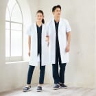 診療衣のきちんと感はそのままに、爽やかな半袖へのアレンジがスタッフ内でも高評価のコート。また、使い勝手のいい収納ポケットのデザインもポイントです。ポケットは胸と両脇の3ヵ所に配置されており、持ち物を分けてすっきりと収納可能。左胸ポケットはペン差しが付属しているので、とっさのメモなどもスムーズに対応いただけます。脇ポケットは物が取り出しやすい斜め開口になっており、収納時の動作をスマートに。使用シーンを丁寧に考えた設計が抜群の使い勝手を実現しています。