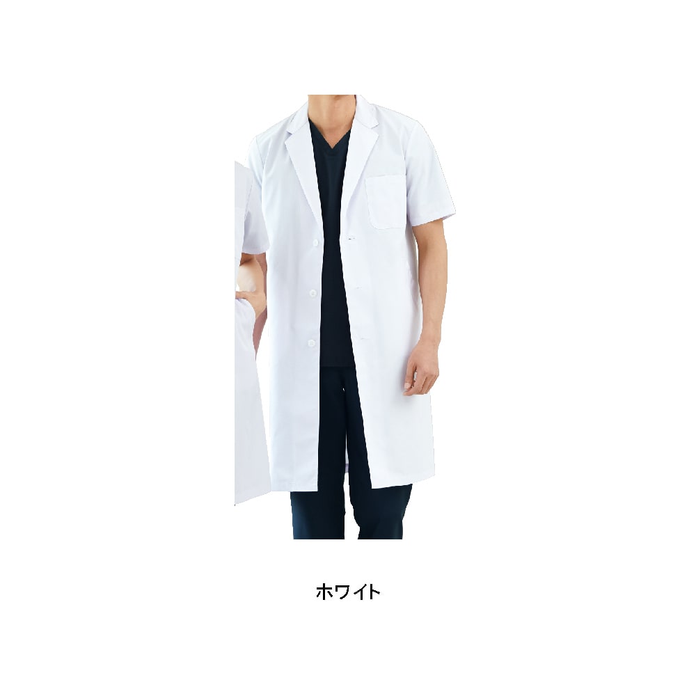 暑い時期の着用でも重たくならず、爽やかな印象を与えてくれる診療衣です。きりりとしたシャープな襟など、ベーシックながらこだわりを感じるディテールが爽やかさにきりりとした印象をプラスしてくれます。また、暑い季節には前開きでの着用もおすすめです。すっきりとしたシルエットと生地の持つハリ感で、前を開けて着てもだらしなさを感じさせません。半袖デザインのため腕周りの動作がより軽快に。診察や書きものといった動作はもちろん、腕の上げ下ろしなどの大きな動作もスムーズに行えます。