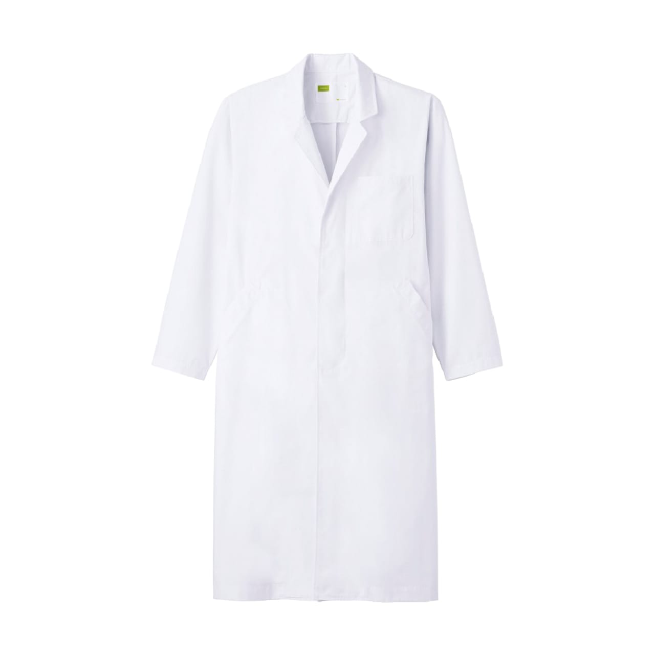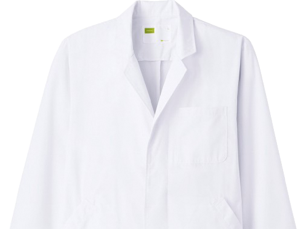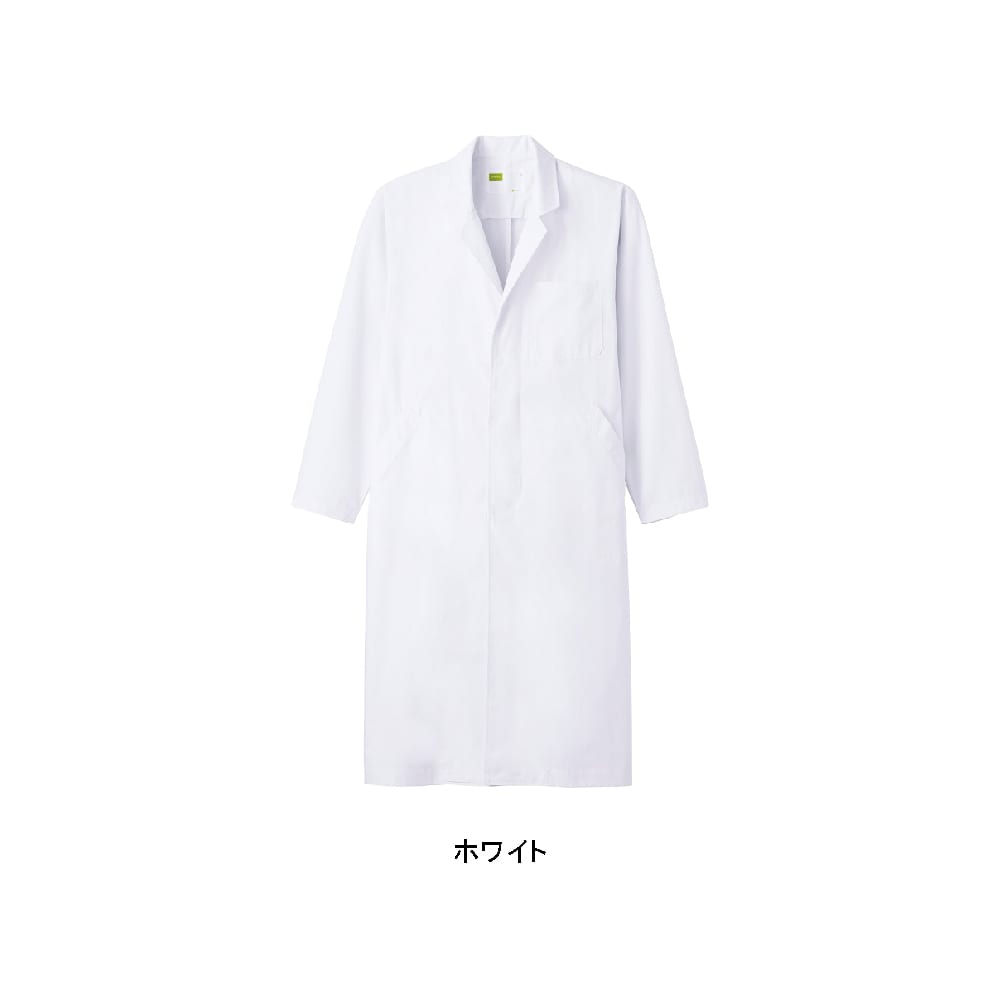 シンプルで基本に忠実なデザインが、誠実な印象を与えてくれるドクターコートです。丈はずしっと安定感のある膝までのレギュラー丈を採用し、立ち姿のシルエットもかっこよく決まります。カラーは清らかな印象のホワイト。ハリのある生地の質感も相まって、きりりとした清潔感をプラスしてくれます。また、裾の後ろ側にスリットが施されているのもポイント。バックスタイルのアクセントとなるとともに、長めの丈でも動きやすい軽快な足さばきが可能です。
