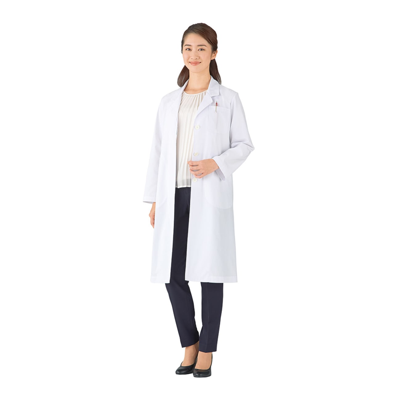 ベーシックなデザインが人気の清潔感あふれるドクターコート