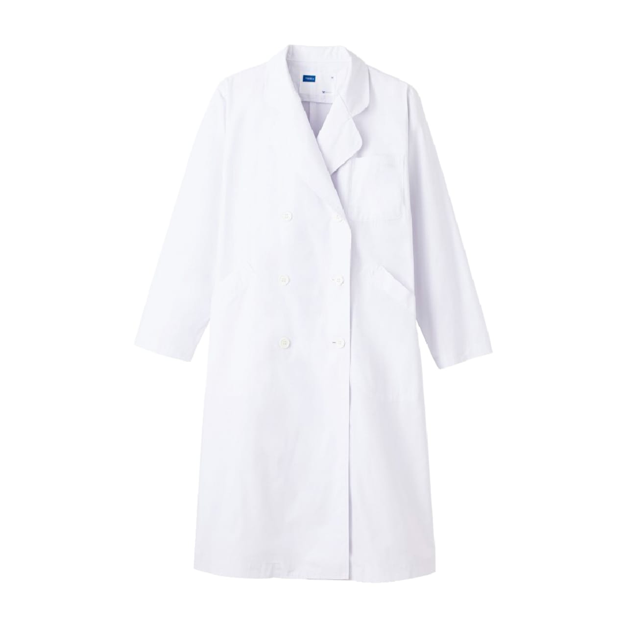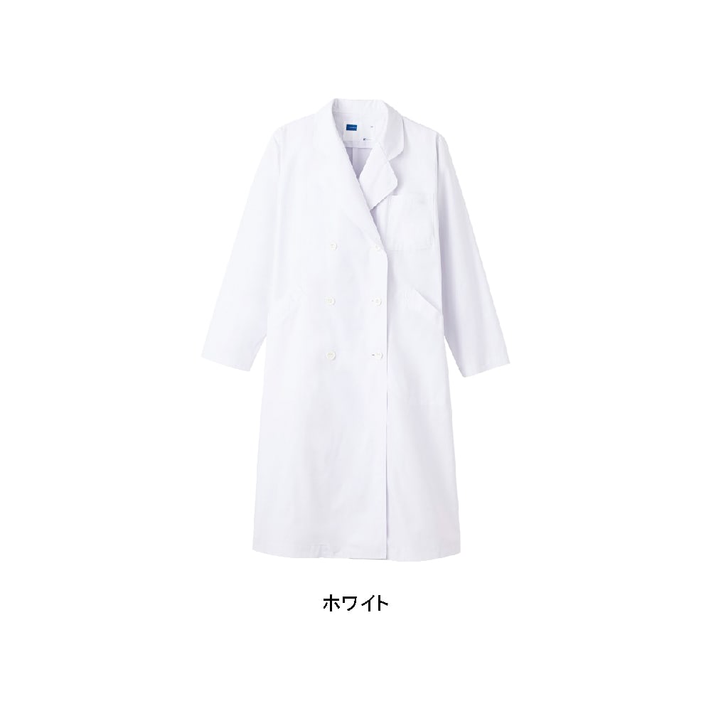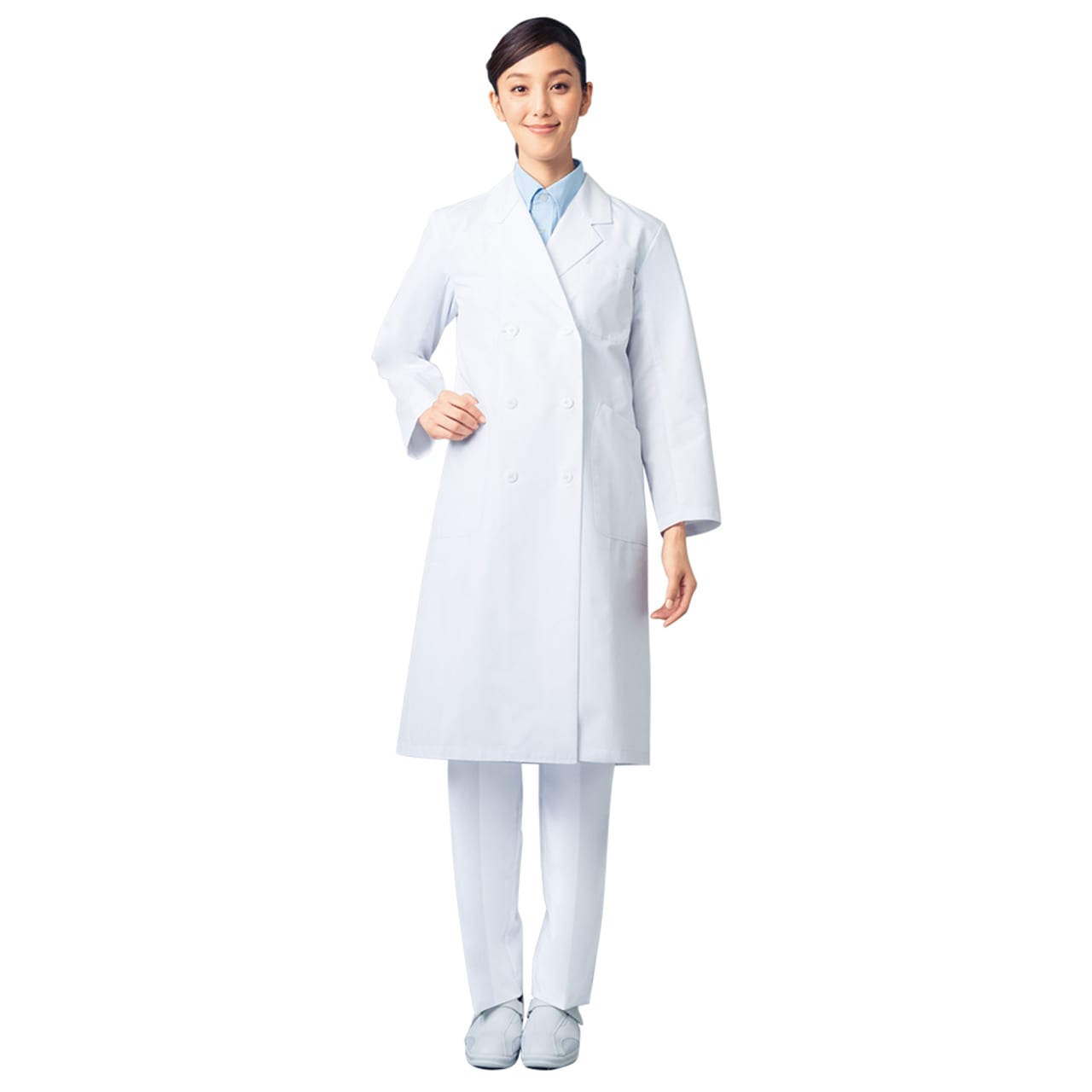 ダブルボタンならではの美しさを探求したドクターコートです。着丈は膝までのレギュラー丈ながら、重たくなりすぎないすっきりとしたシルエットに。着物のように重なる前身頃と襟の絶妙なバランスも、全体の印象を格上げしてくれます。また、生地は適度なハリ感があり、毎日の着用でもくたびれた印象になりにくいのもポイント。生地のホワイトカラーも相まって姿に清潔感を与えてくれます。シルエットから細部まで、こだわり抜かれたデザインで、360°どこから見ても洗練されたドクターコート姿を叶える一着です。