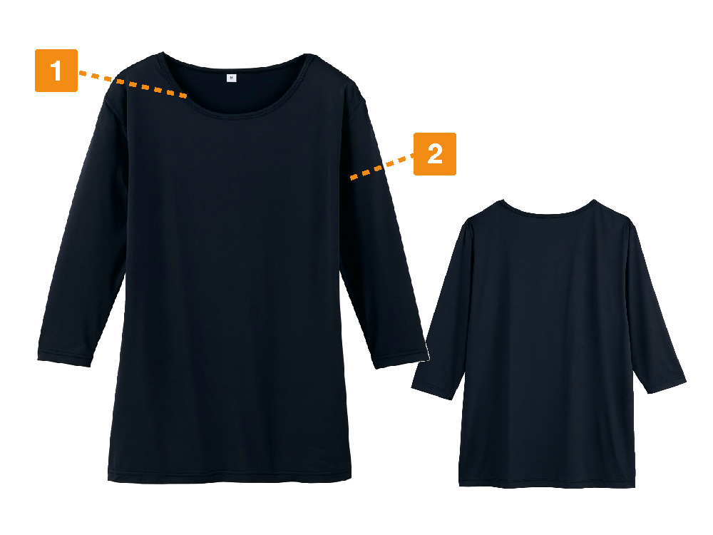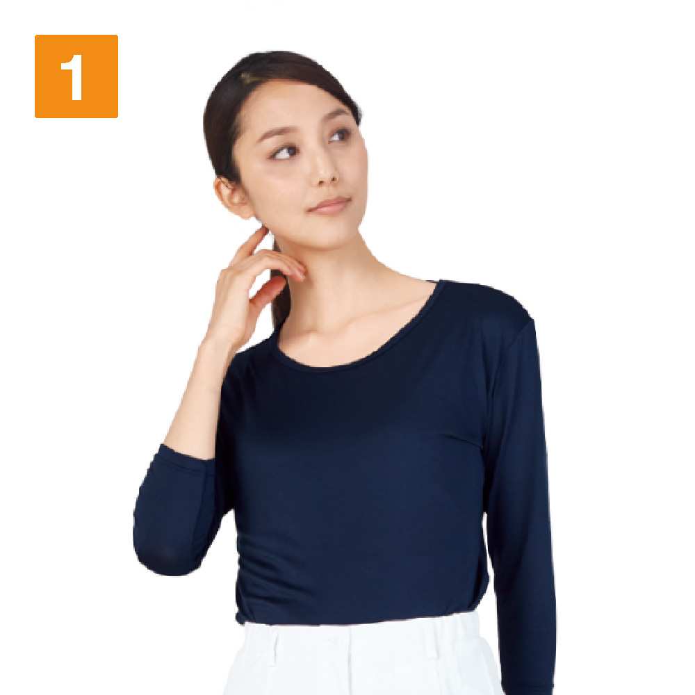 スクラブとの相性抜群の暖かインナーです。首周りを広めにとった、ボートネックデザインを採用し、スクラブの重ね着時にもインナーが見えず、すっきりとした着こなしを実現しています。また、作業による汗の気になる臭いを軽減するDEOテープを、肩と脇下部分に配置。抗菌・消臭効果のあるテープで、不快な臭いの元となりやすい場所を集中的に消臭します。また、肌触りの面では裏側が微起毛した生地を使用することで、優しく暖かな肌触りを実現。さらに吸湿発熱機能付きで、よりぬくもりを感じられる一着です。