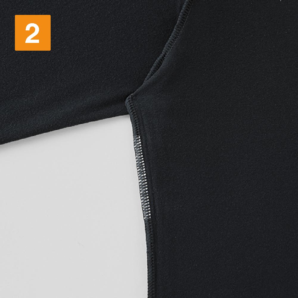 生地の持つ優れた機能で、快適な着心地を実現したインナーです。本体に使用されているのは、発熱効果のある素材を使用した生地。水蒸気や太陽光を吸収し、熱へと変換することで暖かな着心地を実現しています。また、DEOテープにプラスして、汗などの不快な臭いを減少させる加工が施されています。長時間の着用でも臭いを感じにくく、快適にお過ごしいただけます。さらに、細菌の増殖に対して抑制効果のある加工が施されています。清潔な状態を保ち、安全かつ快適なお仕事をアシストするウェアです。