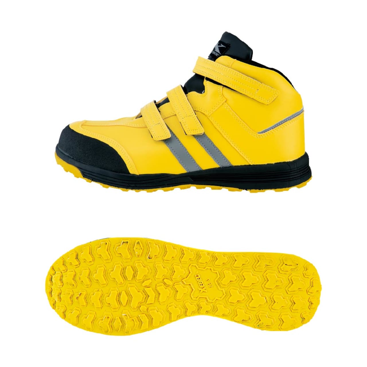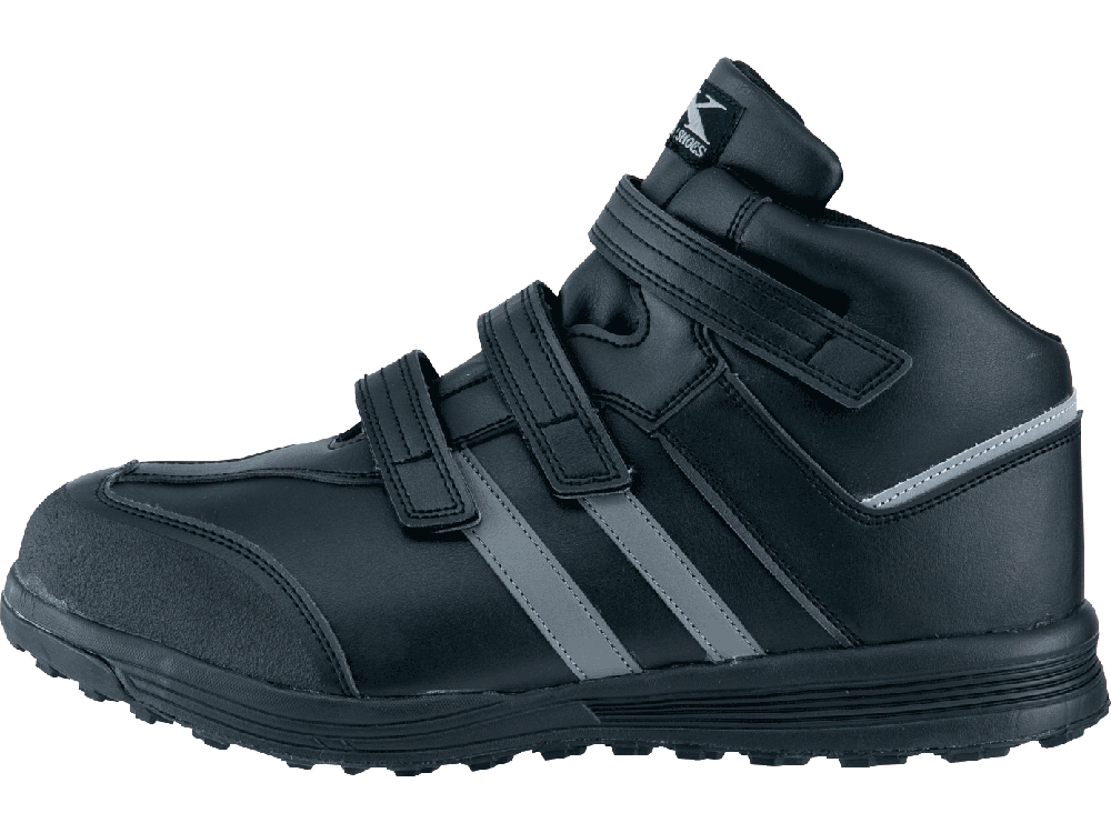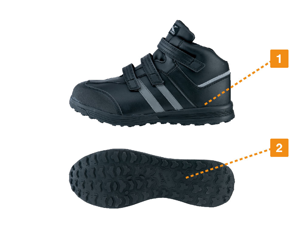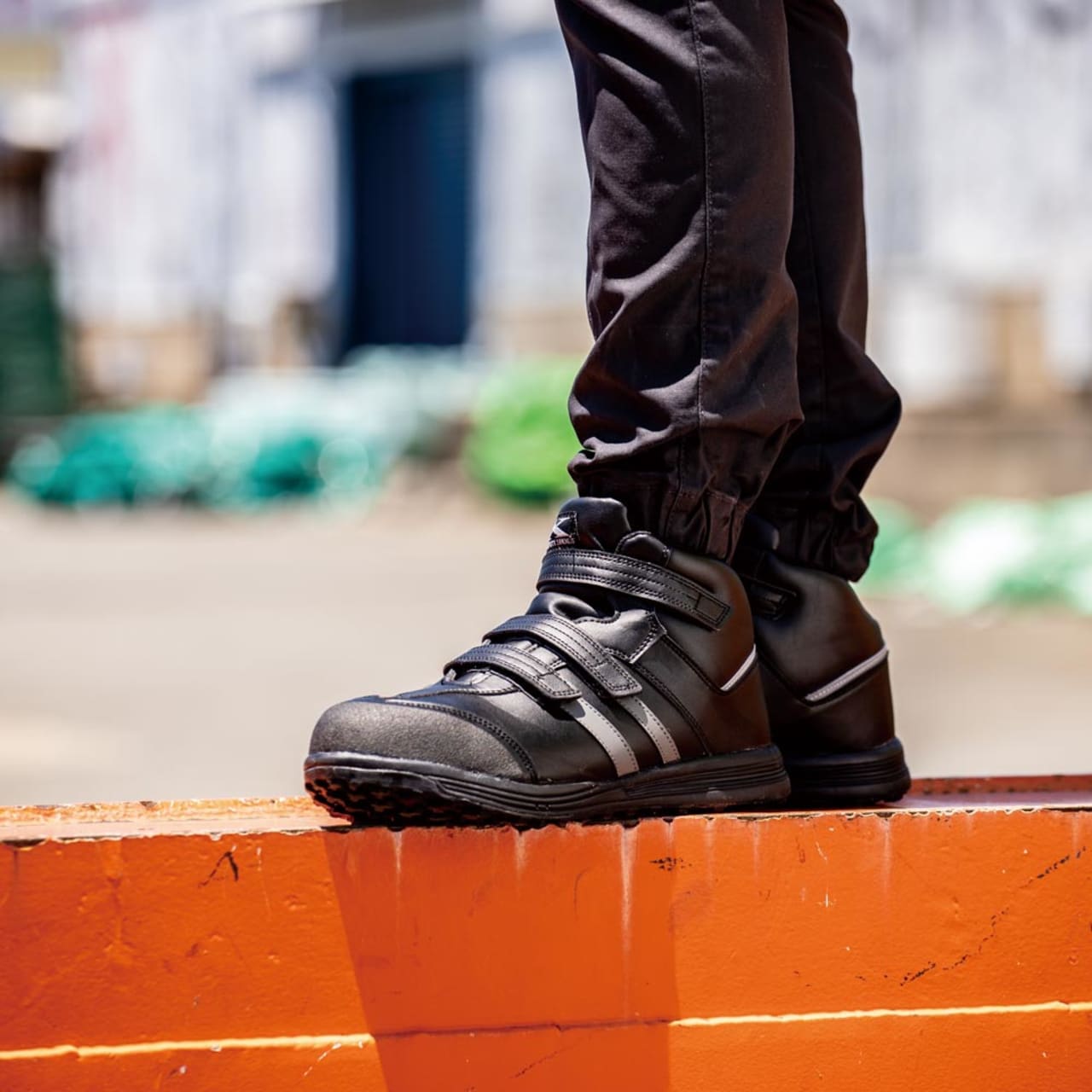 危険な現場でこそ発揮される、抜群の安全性を誇る安全靴です。織物素材を使用した踏み抜き防止材を靴内に配置することで、足裏の強度をアップ。釘やガラス片などの踏み抜きによるケガ、事故を防止します。さらに、足元が悪い現場でも安定した歩行が可能になるよう、靴裏はブロック形状のラバーが使用されています。高いグリップ性で、転倒しにくく高い安全性を実現。また、脱着に便利な面ファスナーが採用されています。足へのフィット感調整も容易で、手袋をつけたまま調整できとても便利です。