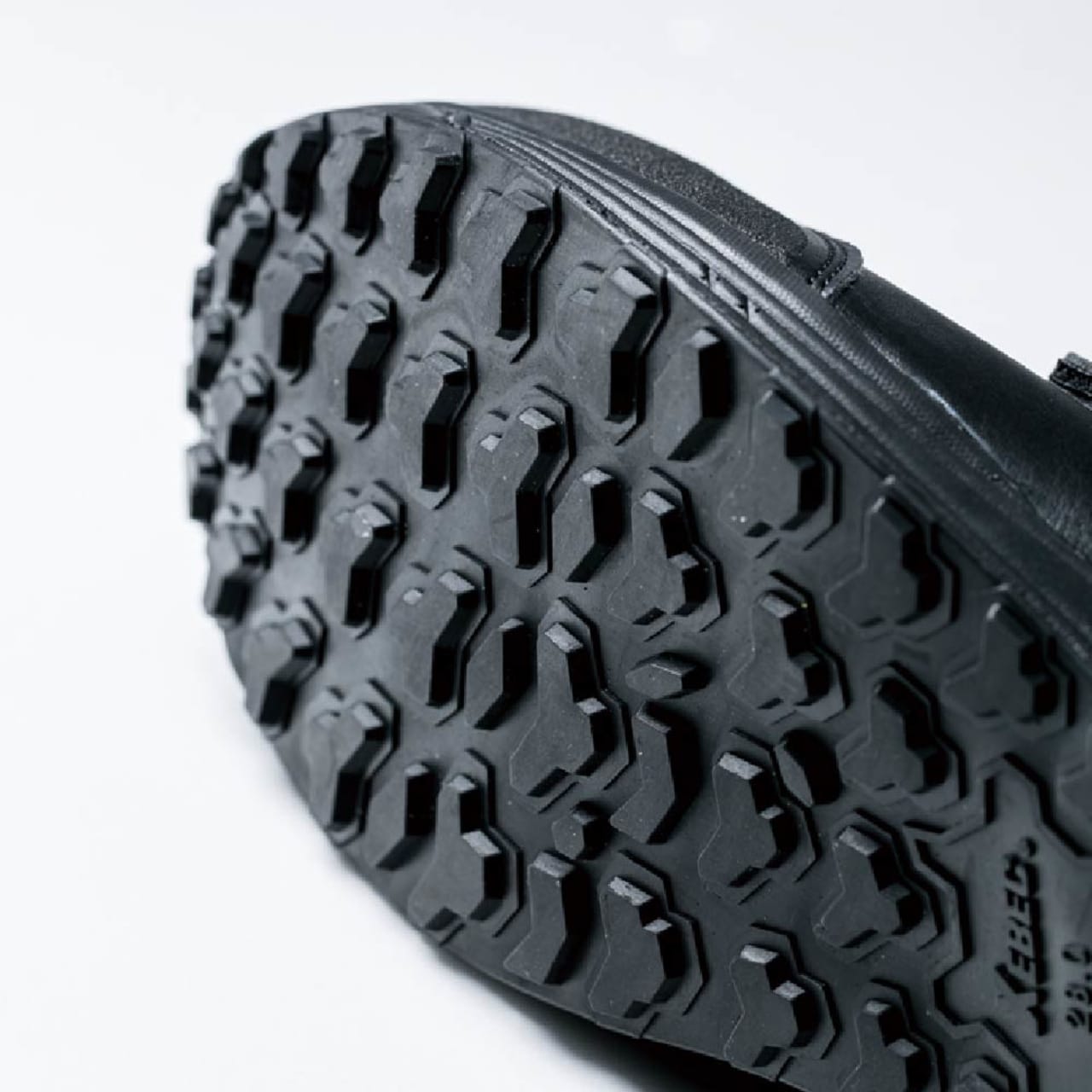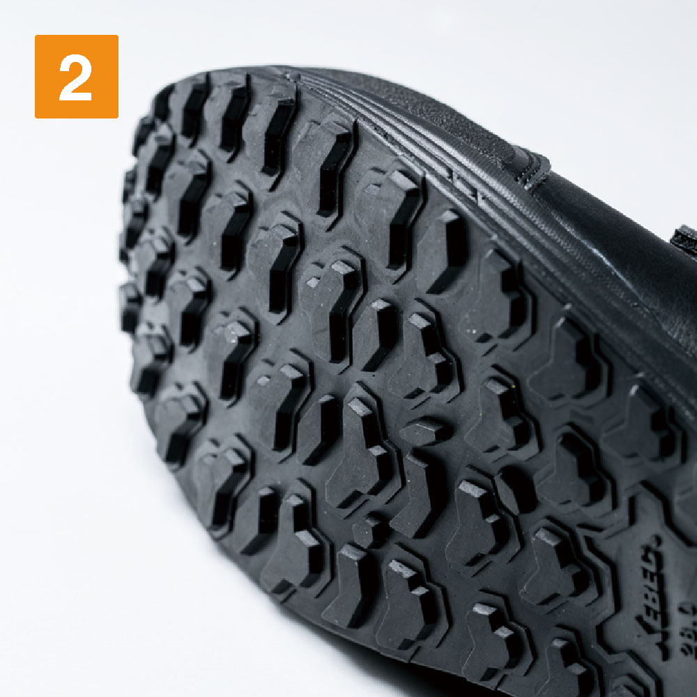 高いグリップ性を発揮するブロック意匠のラバーを採用