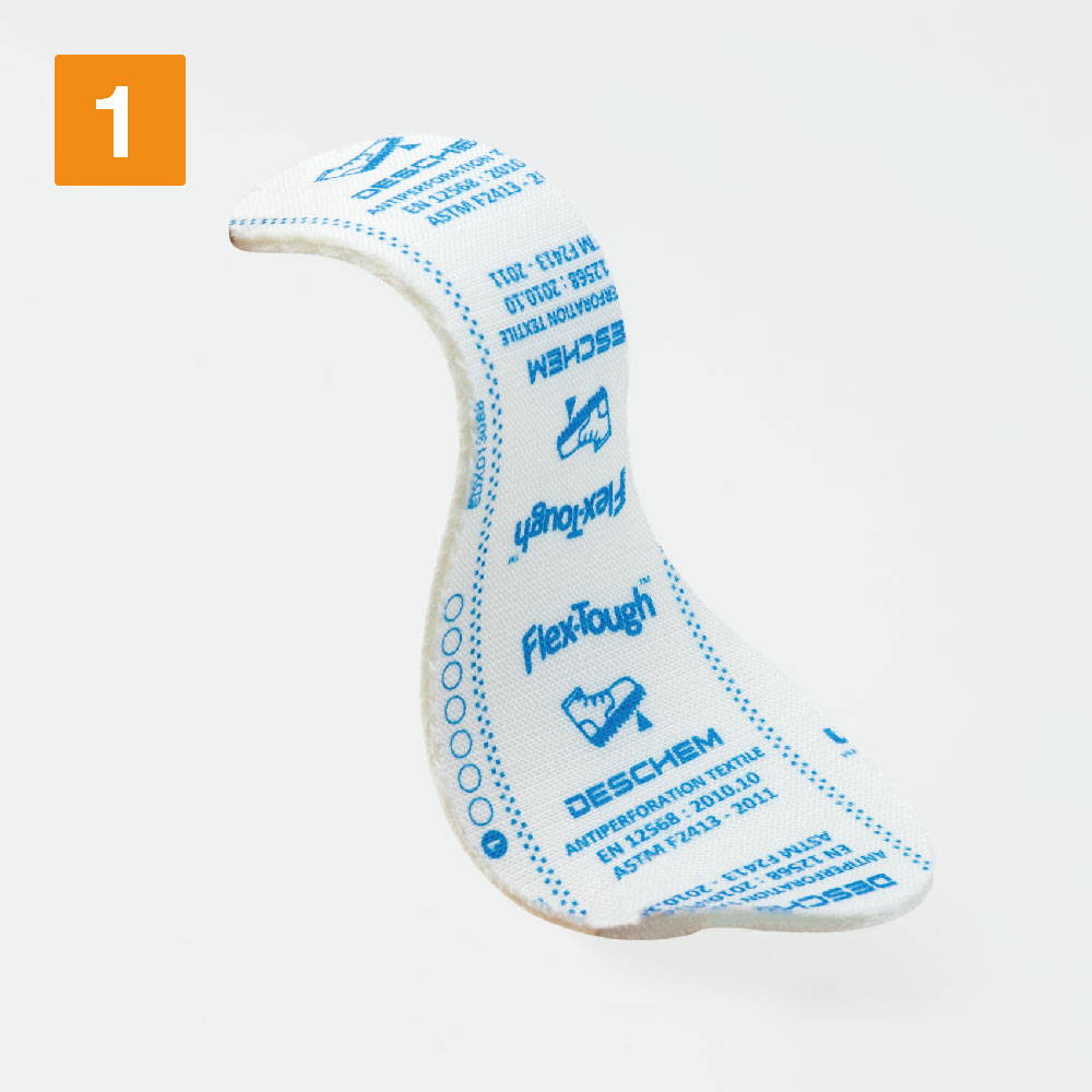 織物で形成された踏み抜き防止材入りで、釘やガラス片等から足裏を保護