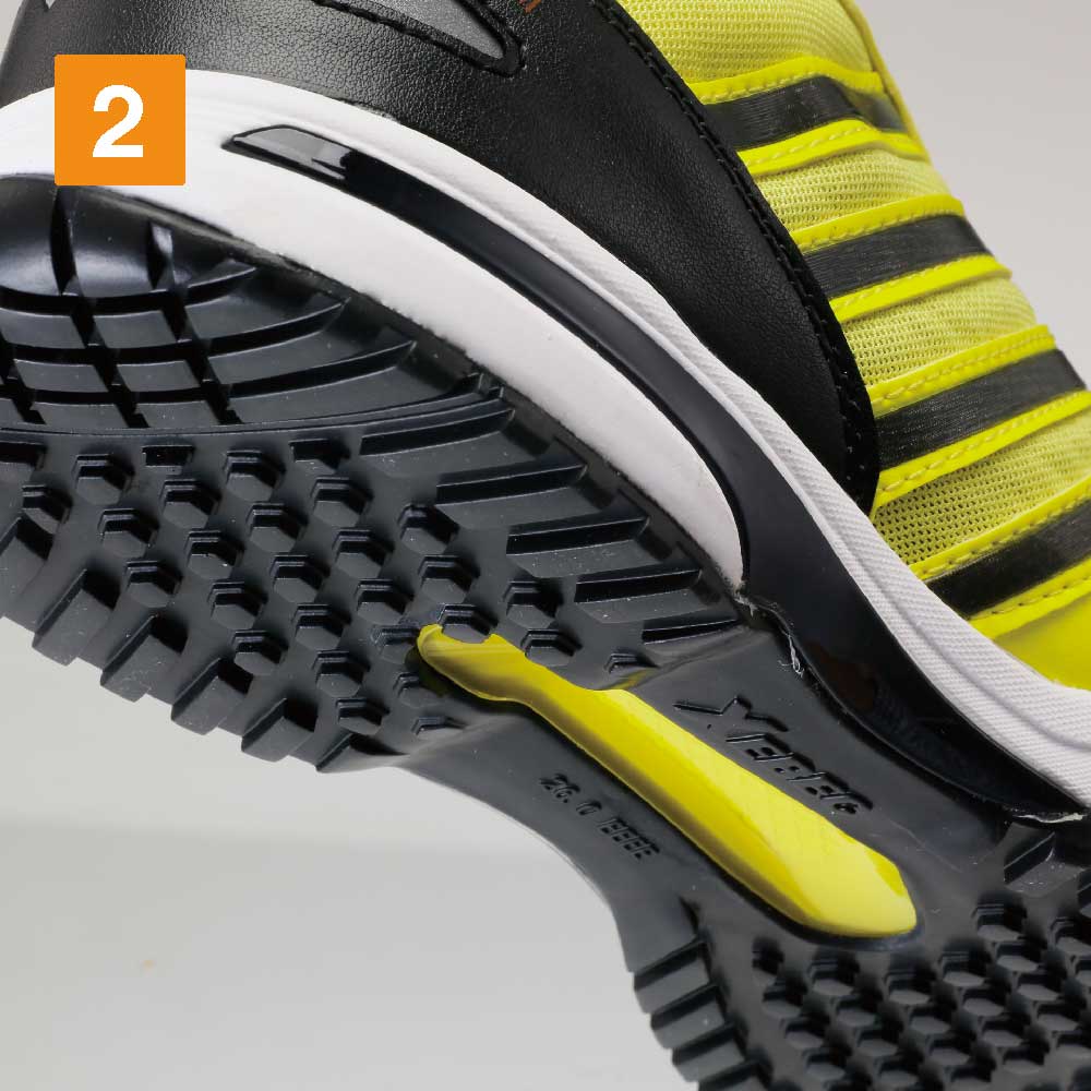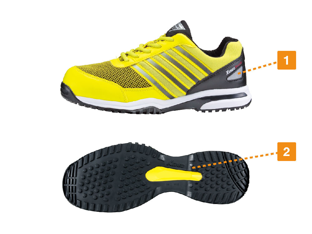たくさんの機能を備えたソールで、他にはない安定した履き心地を実現した一足です。やわらかく優れたクッション性を備えたソールが、足をしっかりホールド。靴裏は滑りにくく、転倒事故のリスクを低減しています。また、ソールには軽量素材が使用され、軽快な履き心地に。足の負荷を低減することで、疲労を軽減する効果も期待できます。安全面では、かかと部分の両側面に反射材を配置。夜間や暗所での視認性をアップし、様々な環境下で安全な作業を可能にしています。