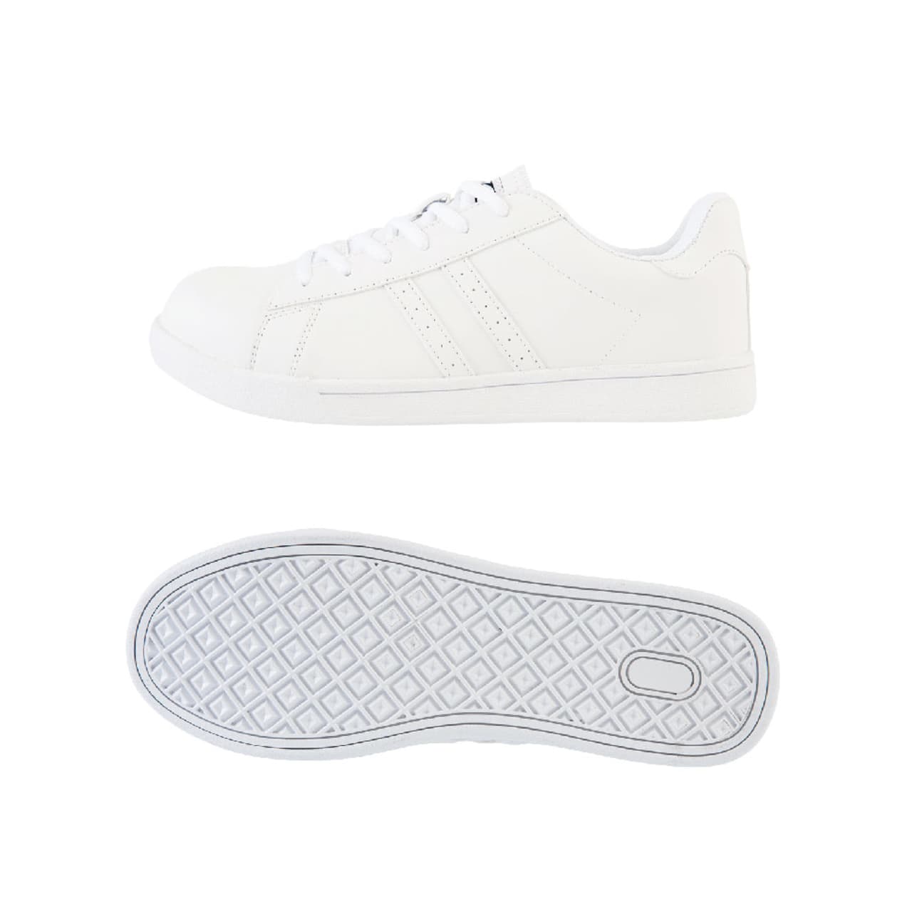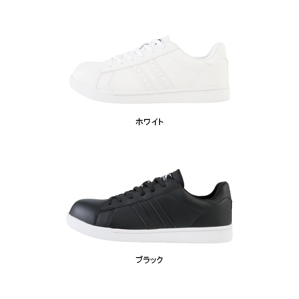 幅広いシーンに馴染むシンプルなルックスが人気の安全靴です。おしゃれな見た目だけでなく、作業する方のことを考え抜かれた設計が採用されています。扱いやすいヒモタイプのアッパーで、いつも一定の履き心地を保てるので違和感を感じさせません。また、耐久性の高い靴底もポイント。熱に強く、油による劣化を抑えたラバー製の底を使用し、長く着用いただける一足に仕上がっています。ソールカラーは2色ともホワイトなので、汚れが目立ちやすいのも特長。内装業など靴底の汚れに対してシビアなお仕事にもおすすめです。