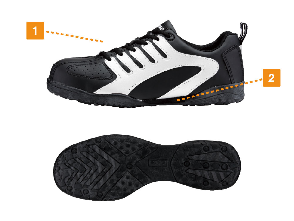 スタイリッシュなデザインに、安全靴としての基本性能もしっかりと抑えたシューズです。樹脂製の先芯を使用し、軽量ながら鋼製先芯と同等の強度を確保。重量物の落下から足をしっかり保護します。また、中底には抗菌・防臭加工が施されており、不快な臭いを軽減。細菌の増殖を抑え、清潔で快適な履き心地が持続します。靴底には油に強い配合のゴムが採用されているので、油によって劣化しにくいのもポイント。長く安全に履いていただける一足です。