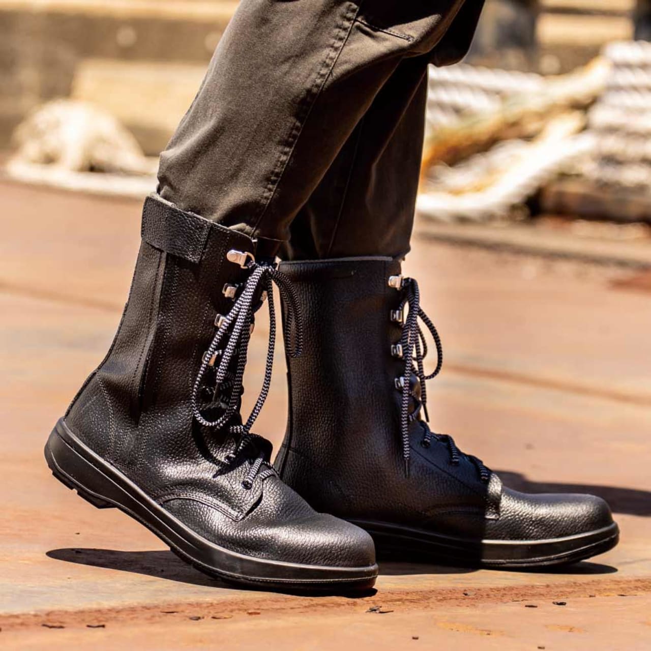 重厚感のある牛革がかっこいい、ブーツスタイル安全靴