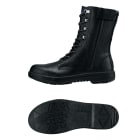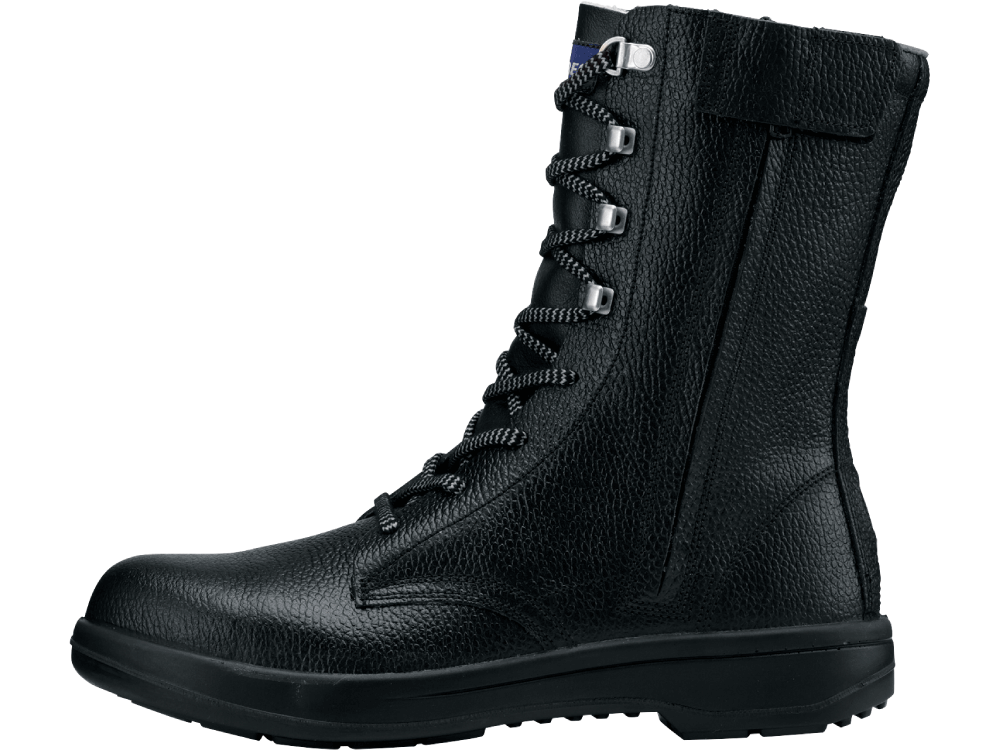ロングブーツならではの性能に加え、安全靴に求められる、高い機能を備えたシューズです。つま先には鋼製先芯と同等の強度を持ちながら、軽量な樹脂製先芯が配置されています。重量物の落下から足を保護し、安全な作業を実現。耐久性の面では、クッション性の高い靴底に、耐油性にも優れたウレタンが使用されています。油による靴の劣化を抑えて、長く履いていただける一足に。また、サイドファスナー上部にはベルトがついており、上がりきったスライダーをカバー。壊れにくく、すっきりとした見た目をつくります。