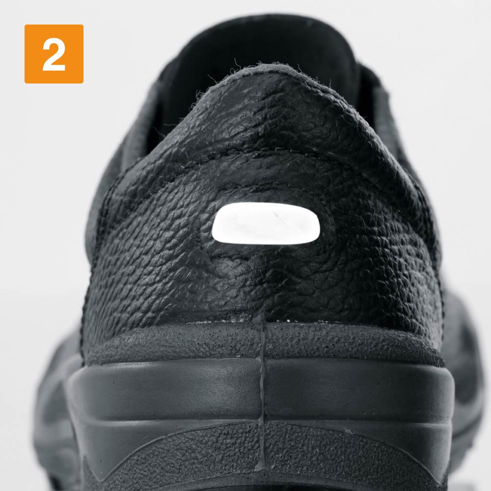 踵部の反射材で夜間・暗所での安全性が向上。