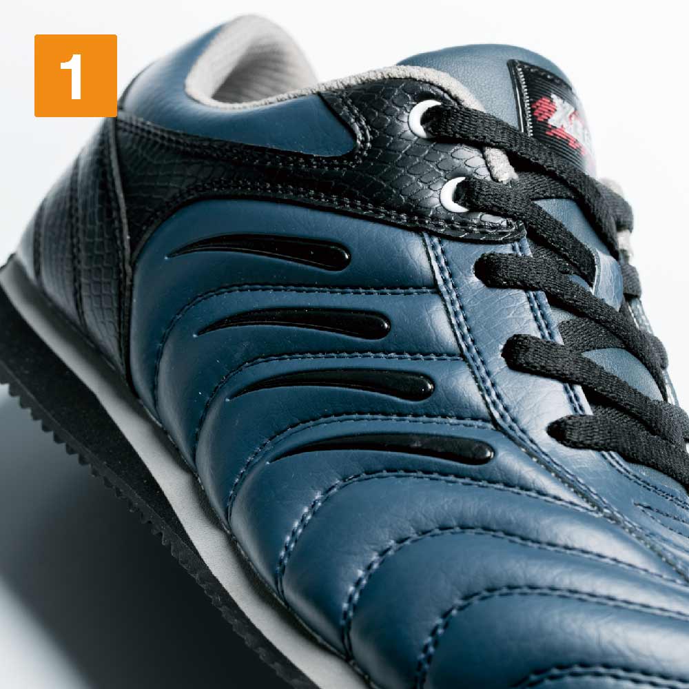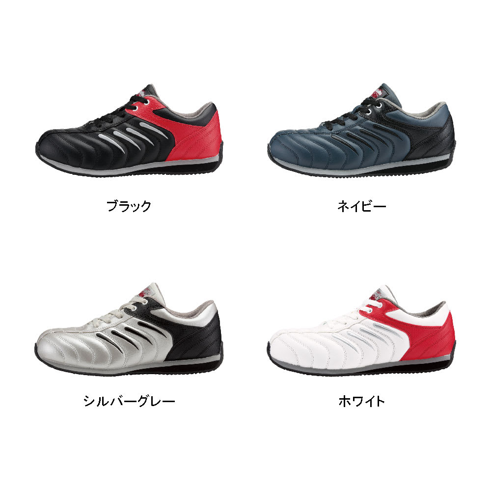 ジーベックによる安全靴の定番モデルのひとつ。かかと部分に施されたツートンカラーデザインや、サイドのアクセント、スポーティなフォルムなど、現場作業に馴染むオーソドックスな雰囲気が魅力的です。ローカットタイプなので足首周りも動きやすく、軽快な動作性を叶えてくれます。また、かかと部分を巻き上げタイプのソールとすることで、運転時の操作性もアップ。現場作業はもちろん、運送業など物流のお仕事にも人気のモデルです。