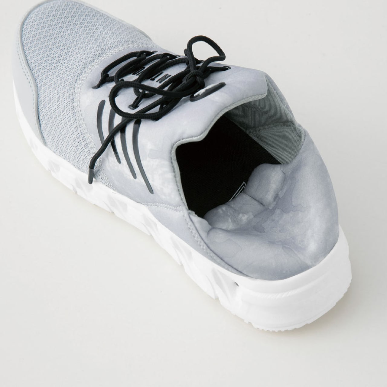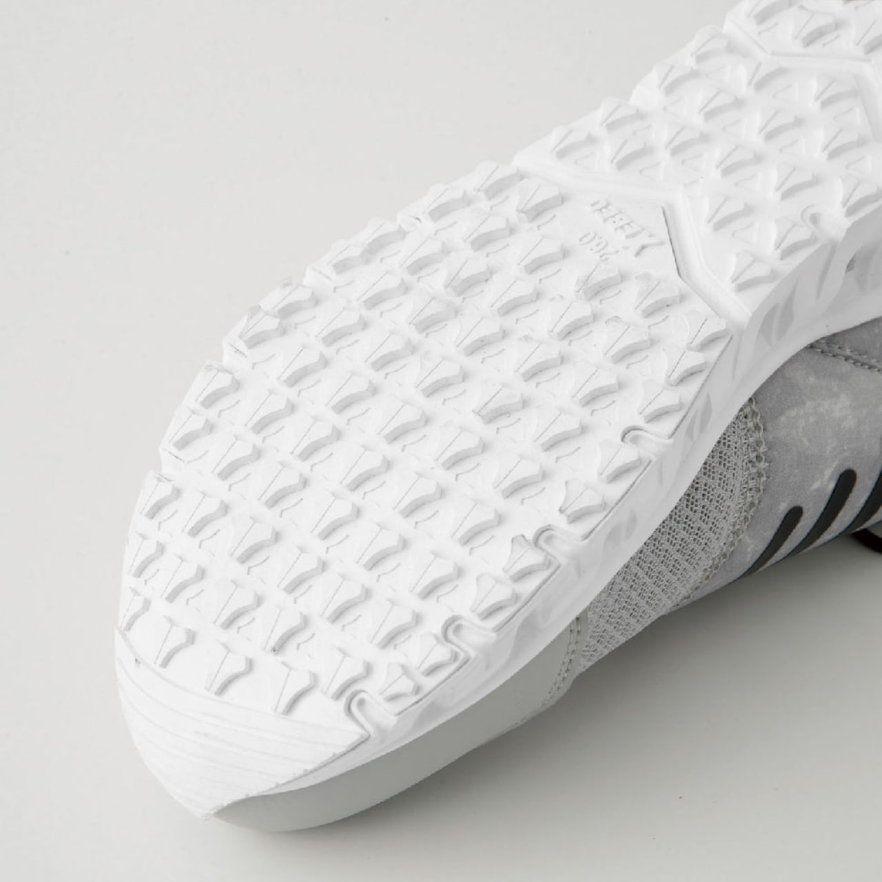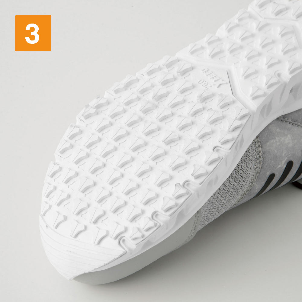 耐滑性に優れた素材と意匠によるホワイトソール。床面の汚れを気にする職種にオススメ