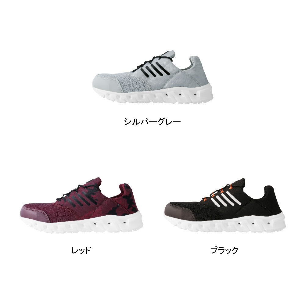| 機能/鋼製先芯、男女兼用、通気性、衝撃吸収、抗菌・防臭中底、耐油性ゴム底、軽量SPソール、耐滑ソール |