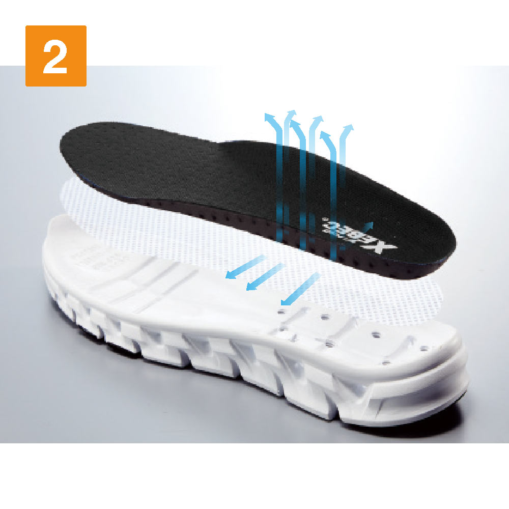 ベンチレーションシステムで空気を循環させ快適な履き心地