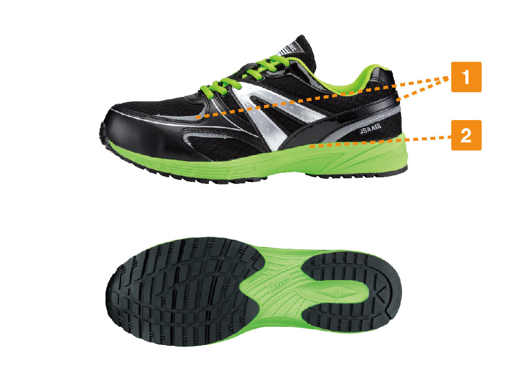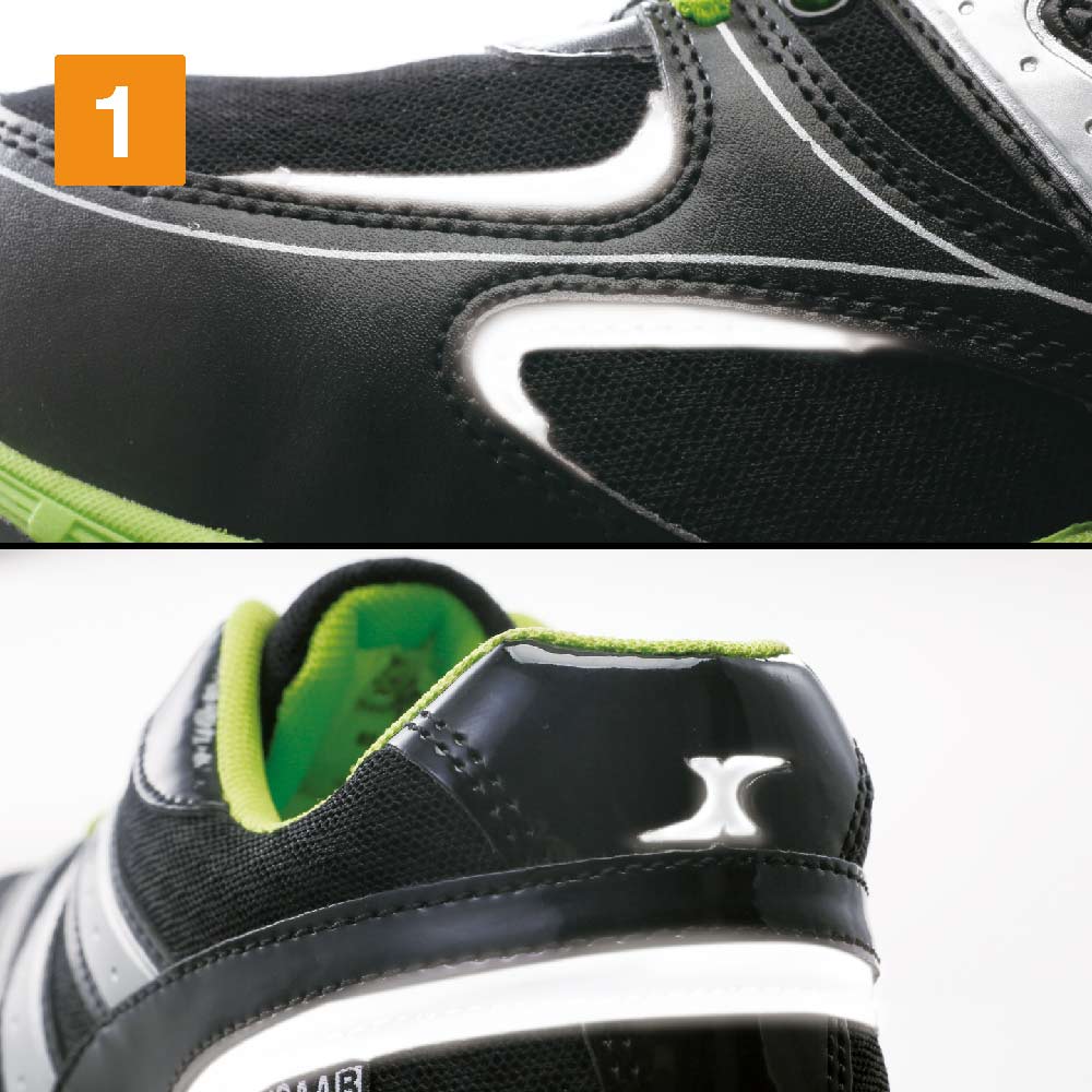 つま先・踵部の反射材で夜間・暗所での安全性が向上