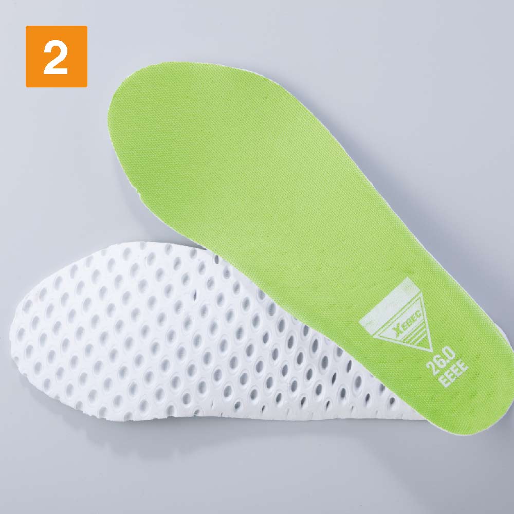 とにかく軽い、片足300g(26.0cmモデル)の安全靴です。軽さとJSAA規格 B種規格に認定されたソールの高いクッション性で足への負荷を減らした、疲れにくいシューズ。運送や物流など、移動の多いお仕事におすすめのモデルです。また軽さに加えて、足の動きに伴う蒸れを解消する通気性も人気の理由になっています。メッシュ生地を使用し、さらにインソールは穴あき仕様。上からも下からも空気を逃がすことで、暑い季節でも快適な履き心地が持続します。中底は抗菌・防臭加工が施されているので、蒸れによる不快な臭いも軽減。より爽やかな履き心地を実現した一足です。