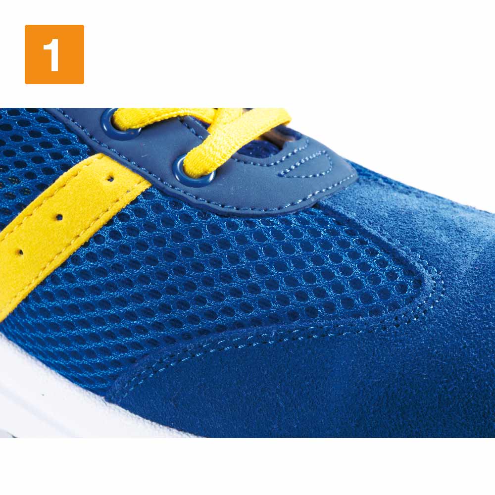 快適な着用感を支える、安全靴としての細やかな機能も優れたシューズです。アッパーソールには通気性抜群のメッシュ素材を広範囲に使用し、靴内部の蒸れた空気を常に排出してくれます。また、汗をかきがちな足が接する中底は抗菌・防臭加工が施されており、不快な臭いを抑えて清潔な状態を保ちます。耐久性の面では、靴裏の素材に耐油性に優れたゴムが使用されています。油による靴の劣化を防ぎ、長く安全に履いていただけるシューズに仕上がっています。