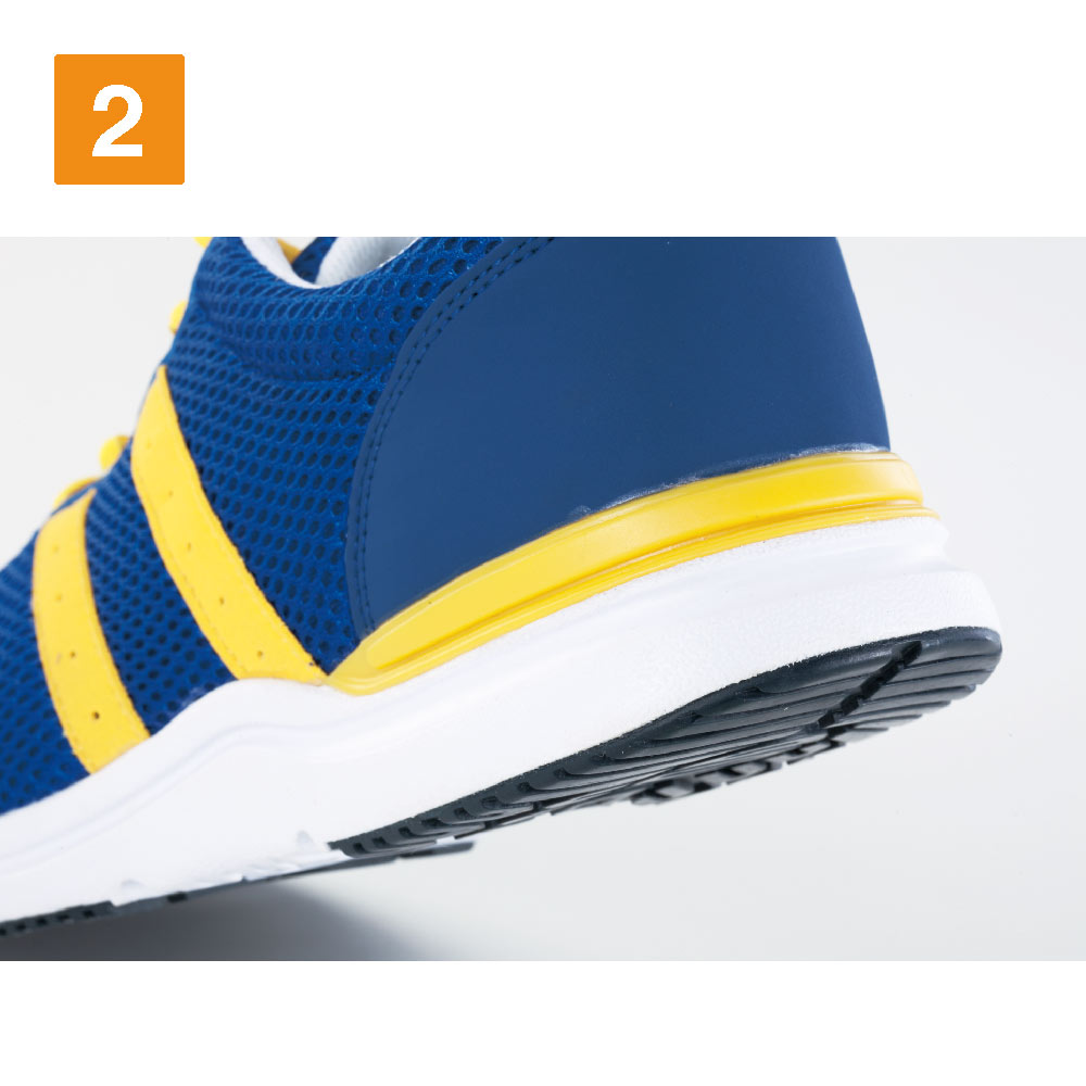 軽さへのこだわりを追及したシューズです。片足300g(25.0cmモデル)と超軽量で、EVA素材を使用した軽量ソールが、高い衝撃吸収性で足の疲労を低減してくれます。先芯には高い強度を持ちながらも軽量な樹脂先芯が使用されるなど、こだわりのパーツ選びが軽やかなフットワークをアシストします。また、かかと部分にはプラスチックスタビライザーが搭載されており、歩行をしっかりサポート。足の横ぶれを抑えて、安定性を大幅に向上させています。