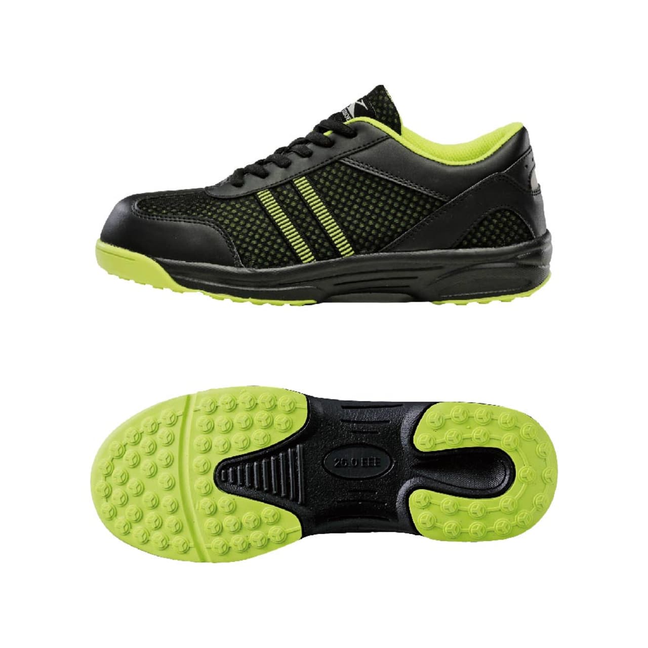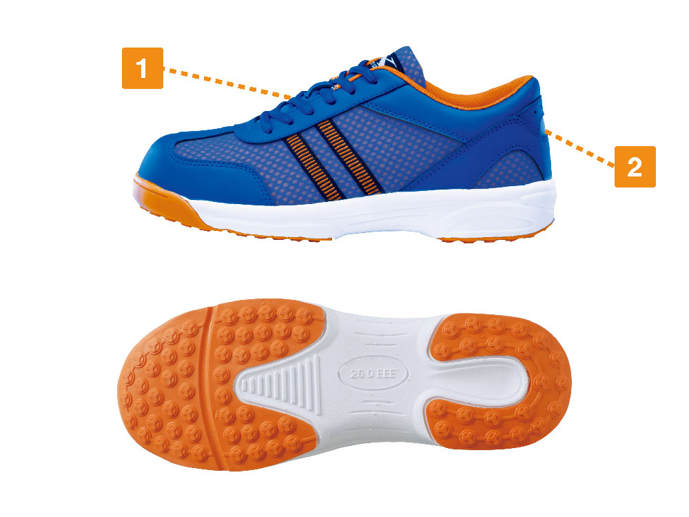 両足で560g(26.0cmモデル)という軽さを誇る、スタイリッシュ安全靴です。軽さの秘密は、軽量のミッドソール。高いクッション性を備える軽量EVA素材を使用したミッドソールが、足へのダメージを低減しつつ軽やかなフットワークを実現します。さらに、アッパーにはメッシュ素材を使用することで、合皮と比較してより軽量に。通気性をプラスし、足の中の蒸れを常に外部に排出してくれます。こだわりの機能を備えつつ、お求めやすい価格で、コストパフォーマンスの高さでも選ばれているシューズです。