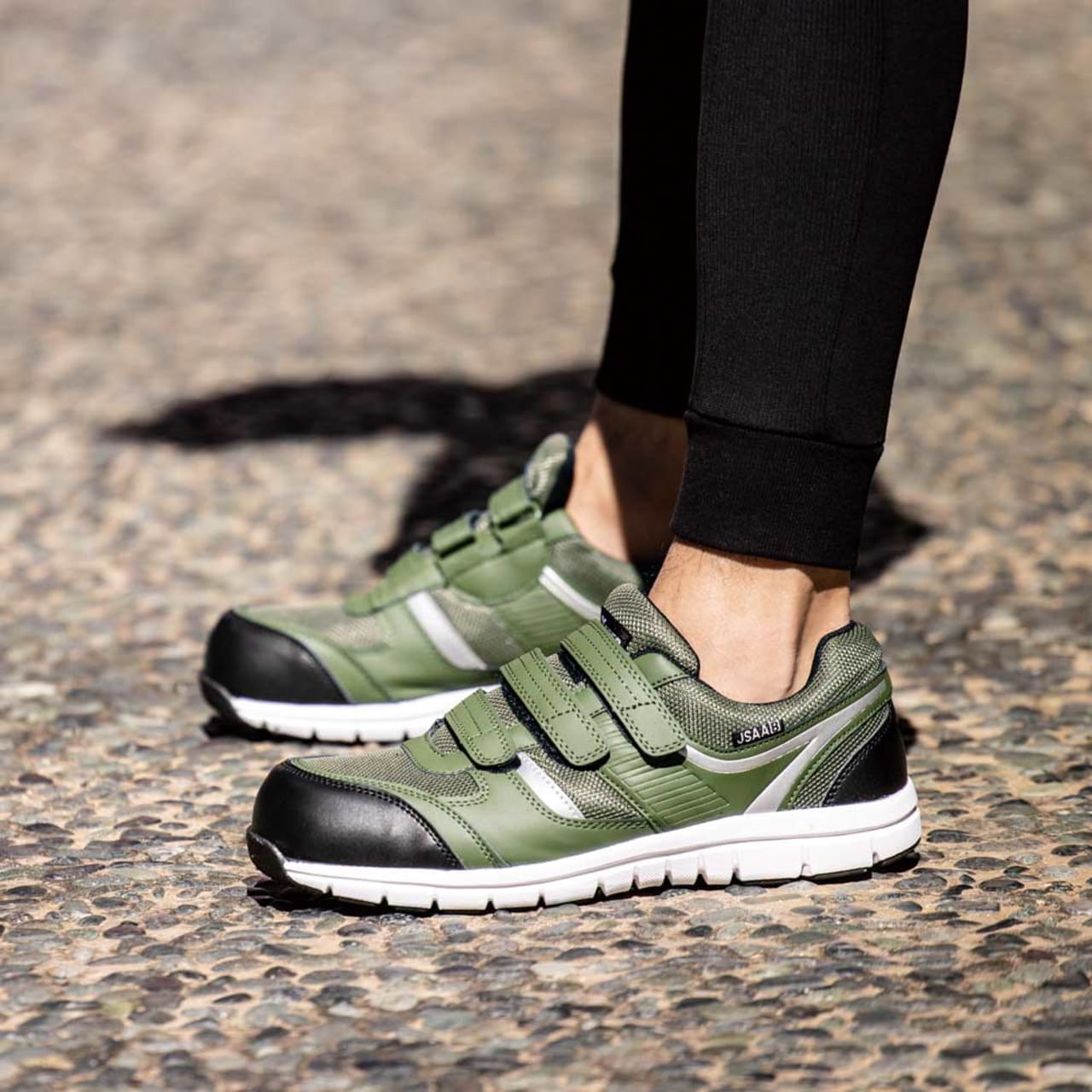 側面・踵の2箇所に反射材を使用。夜間や暗所での安全性を高めます