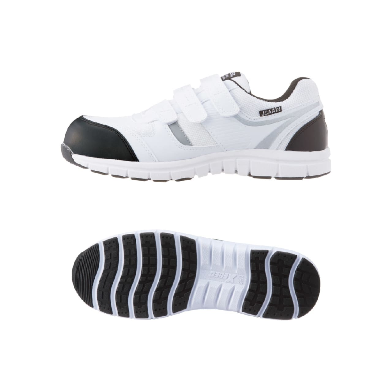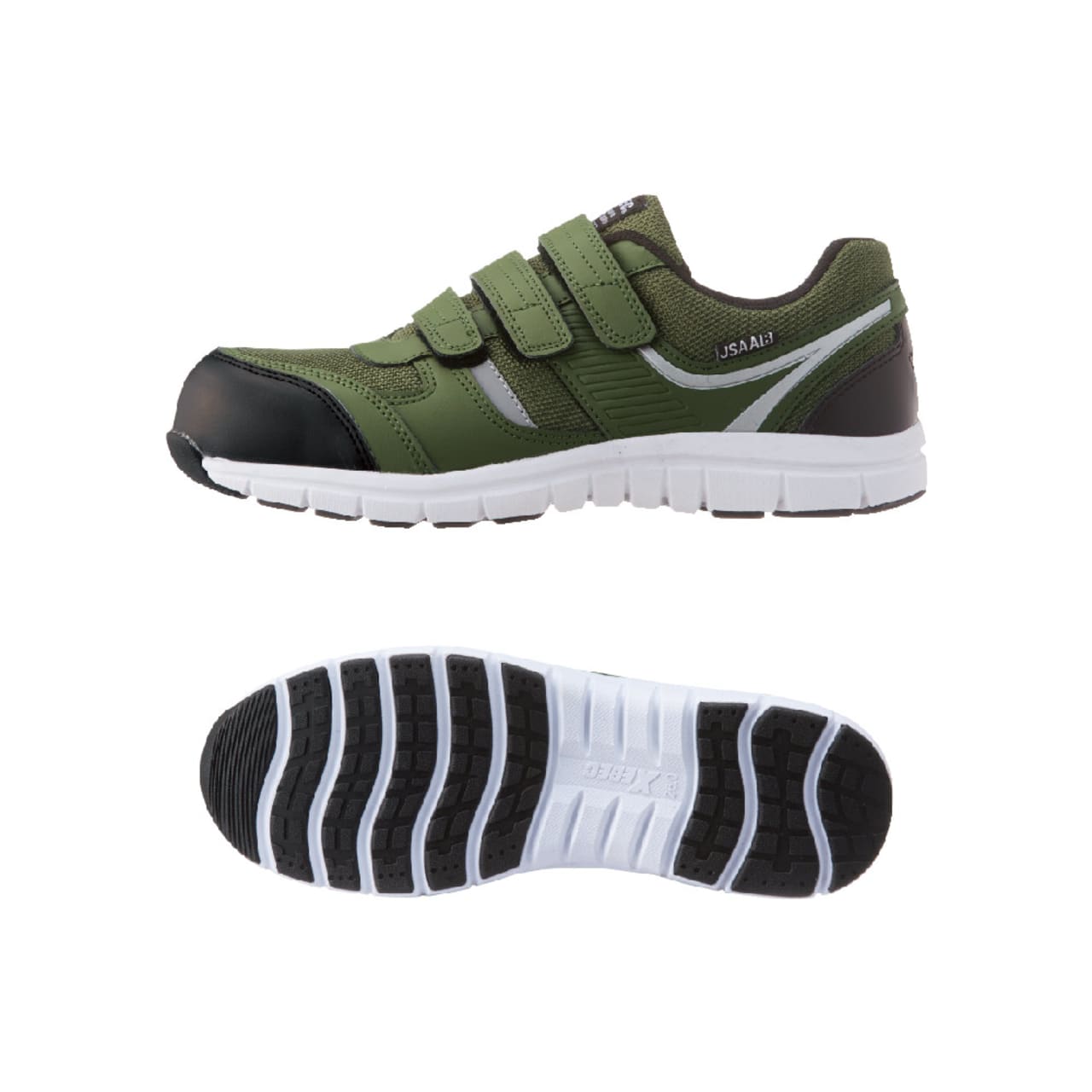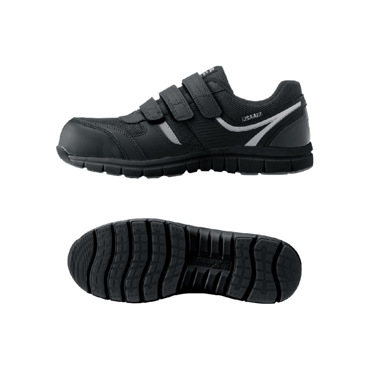 安全性、快適性など安全靴に求められる機能を贅沢に備えたシューズです。つま先を保護する先芯には、高い強度ながら軽量の樹脂製先芯が使用されています。また、ソールには軽量かつ高い衝撃吸収性を備えたEVA素材が使用され、足への負荷を軽減しています。JSAA規格 B種にも認定された衝撃吸収力で、ハードな動作でも足が疲れにくい仕様です。安全面では、側面とかかとに夜間や暗所での高い視認性を確保する反射材が配置され、幅広い時間帯、環境での安全作業を可能にしています。靴裏は油による劣化を抑えたゴムが使用されており、長く安全にお使いいただける一足です。