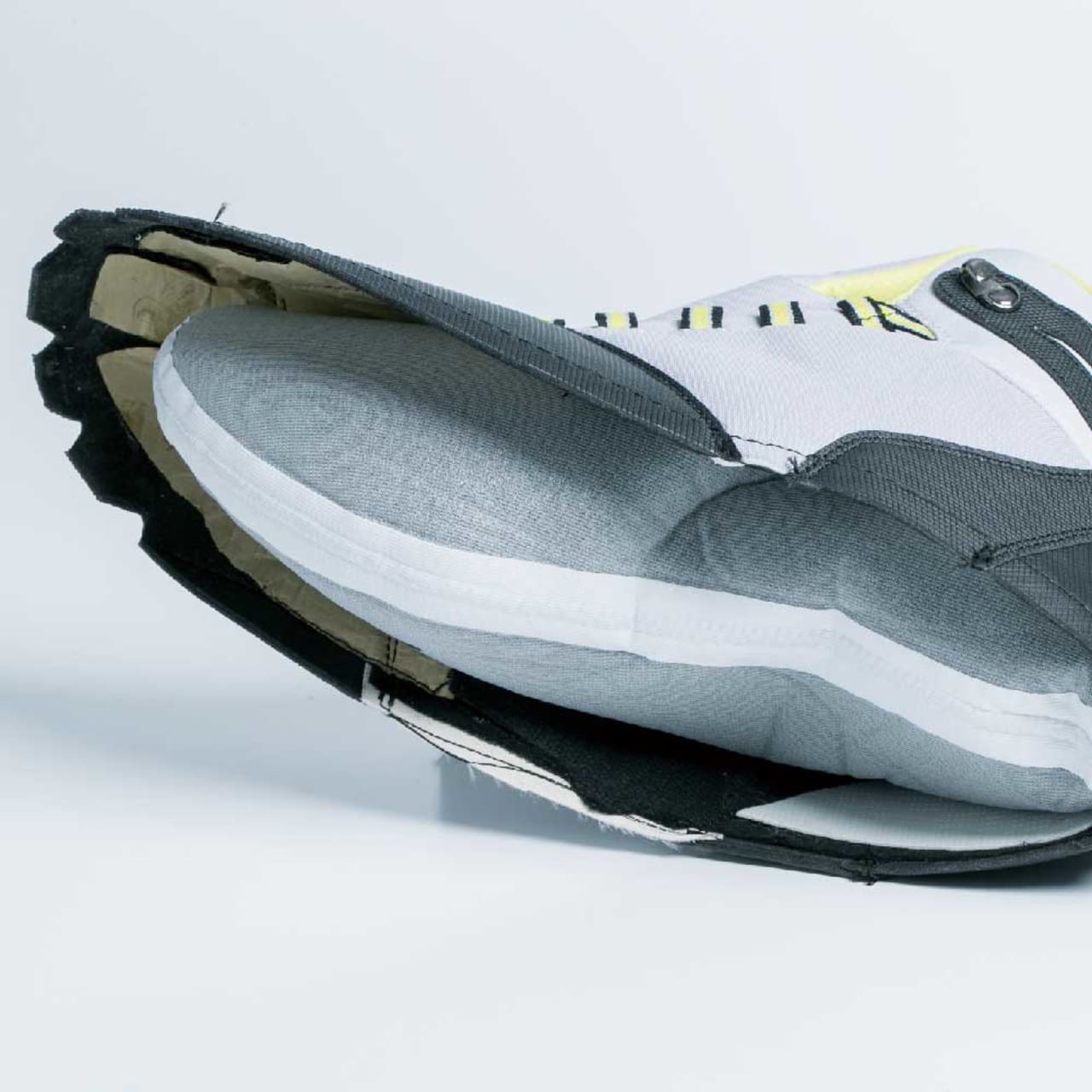 防水フィルムを貼り合わせ、靴内への水の侵入を防ぐ防水仕様