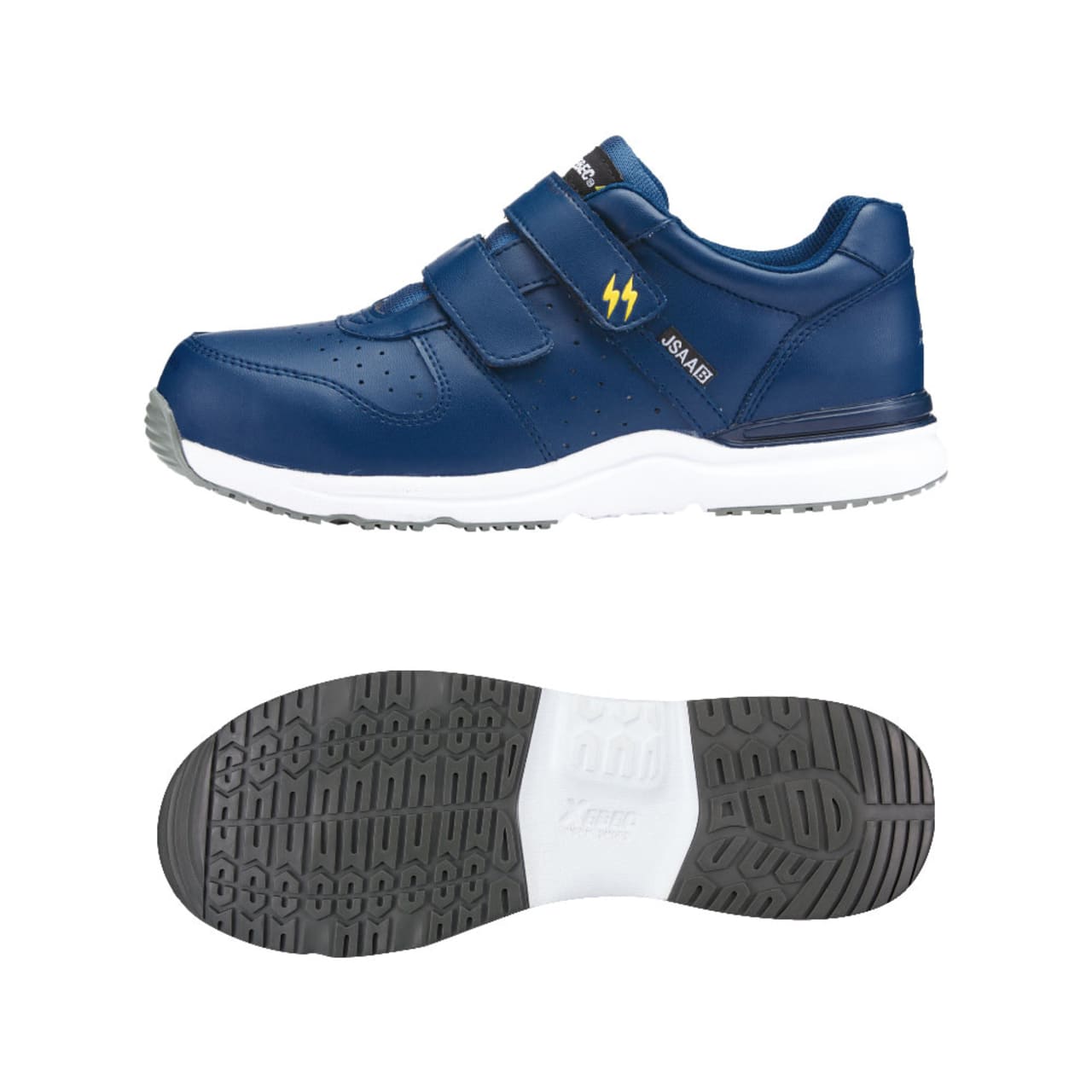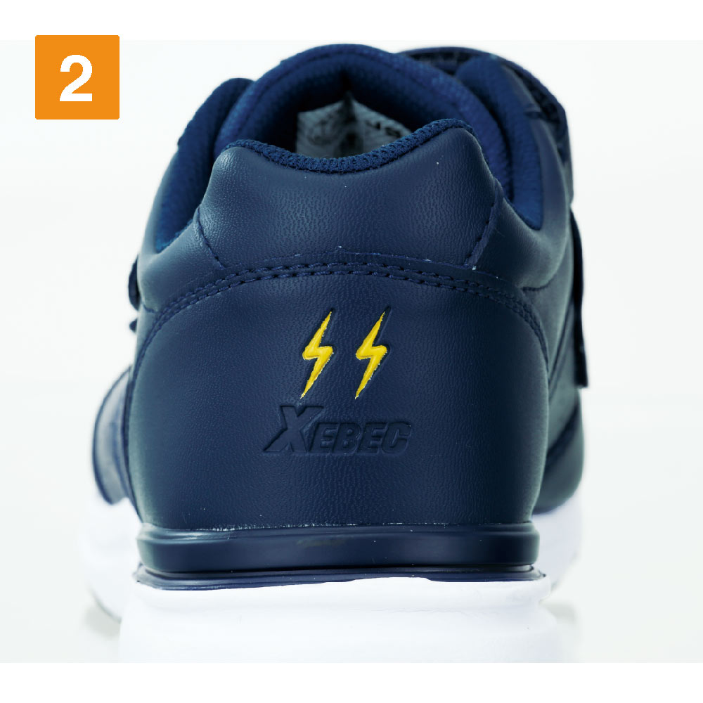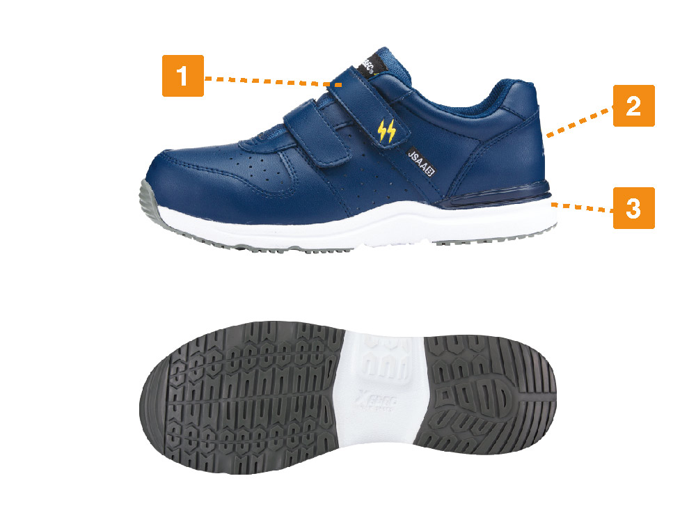JSAA規格 B種に適合した静電気帯電防止性能を備えた安全靴。静電気の発生に対してシビアな環境でも履いていただけるので、電子機器や精密機器を扱う現場での導入も多いモデルです。また、その歩行安定性もポイント。かかと部分に施されたプラスチックスタビライザーが、かかとの横ぶれを抑え、足をしっかりとホールドします。歩行時に足が遊ばないことで疲労を軽減し、毎日の着用をアシストする一足。履き口には面ファスナーが使用され、手袋をした状態でも脱ぎ履きやフィット感調整が簡単に行えます。