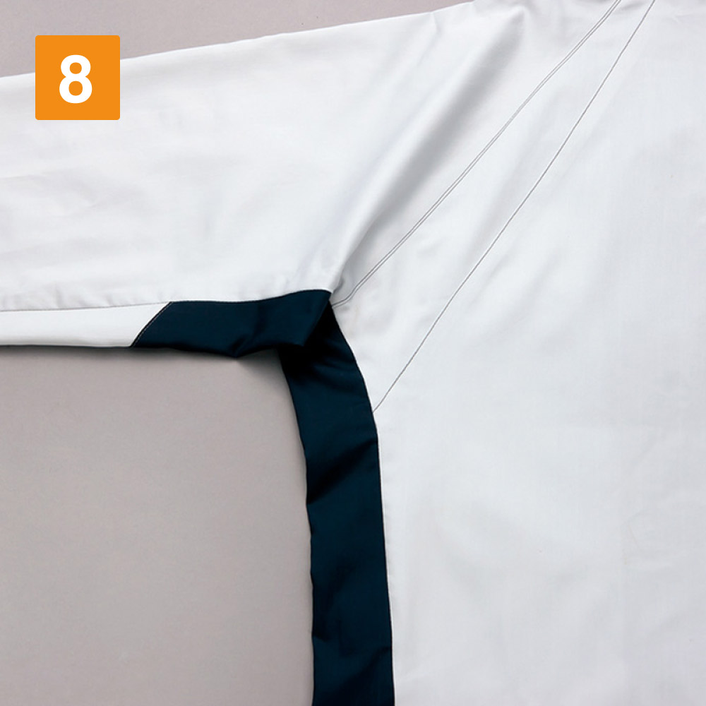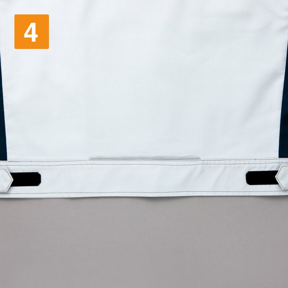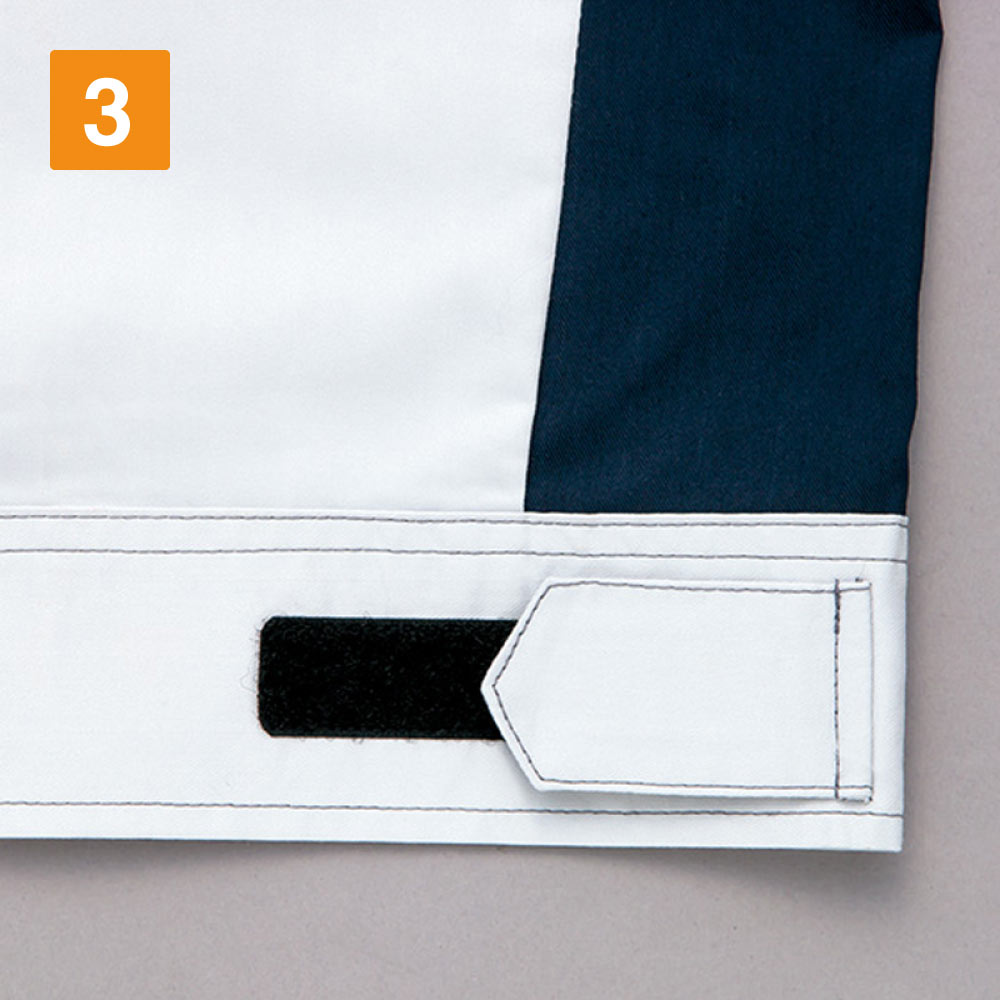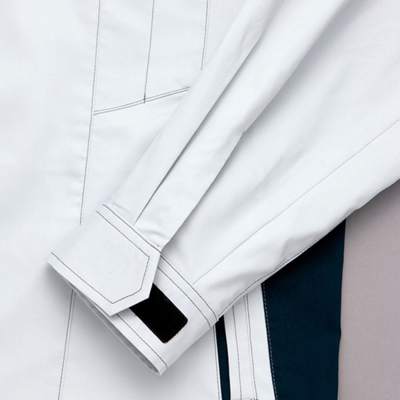 機能面でも細やかな配慮の行き届いたブルゾン。JIS T-8118に適合した帯電防止性能を備え、静電気の発生がクリティカルな危険に繋がる現場でも安全に着用していただけます。肩裏部分にメッシュ素材を使用し、高い通気性を実現。汗によるべたつきを抑え、暑い季節も常にさらりとした着用感が持続します。袖口とウエスト部分に設けられた面ファスナーによるアジャスターで、フィット感を簡単に調整可能です。また、一部のパイピングには反射素材を使用することで、夜間の視認性を向上し事故を防止。安全作業をアシストしてくれます。
