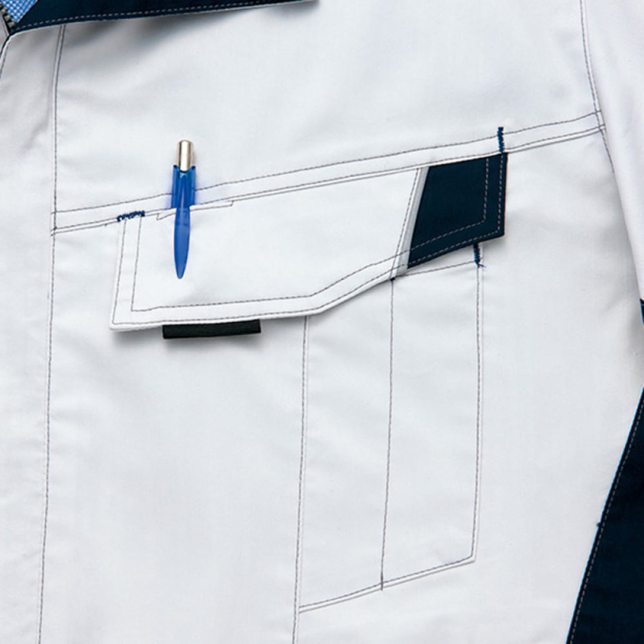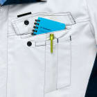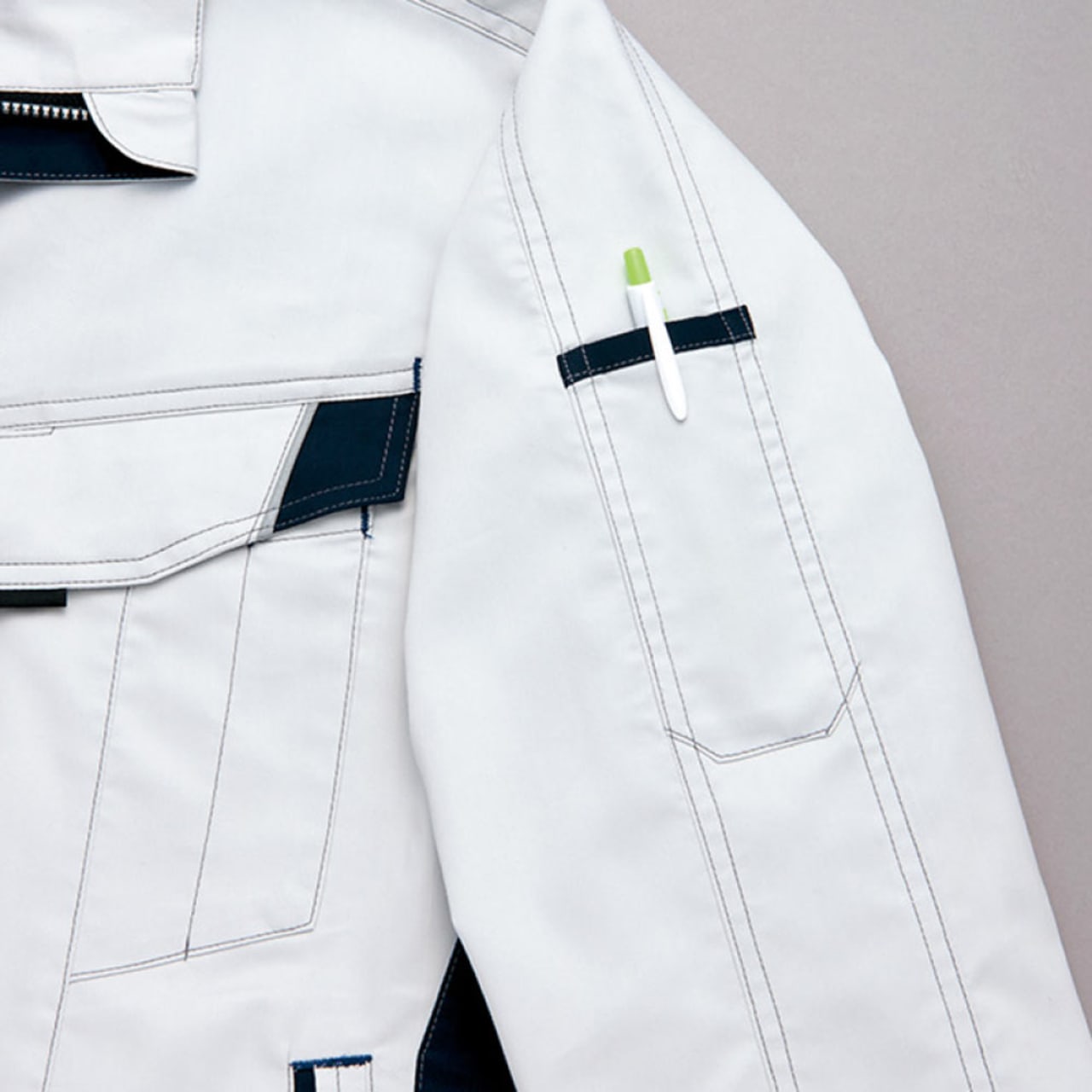 流行のバイカラーデザインがかっこよく、切り替えがあることでスタイルもよく見える!とスタッフ内でも人気のワークシャツです。また、優れた機動性やデザインに加えて、充実の収納を備えているのもポイント。使用頻度の高い胸ポケットは、ペンやスケールを仕分けて収納できる便利なマルチポケットになっており、散らばりがちな持ち物もすっきり収納可能です。また、袖と胸の両方にさっと取り出せるペン差しが付属しているので、とっさの筆もとてもスムーズです。