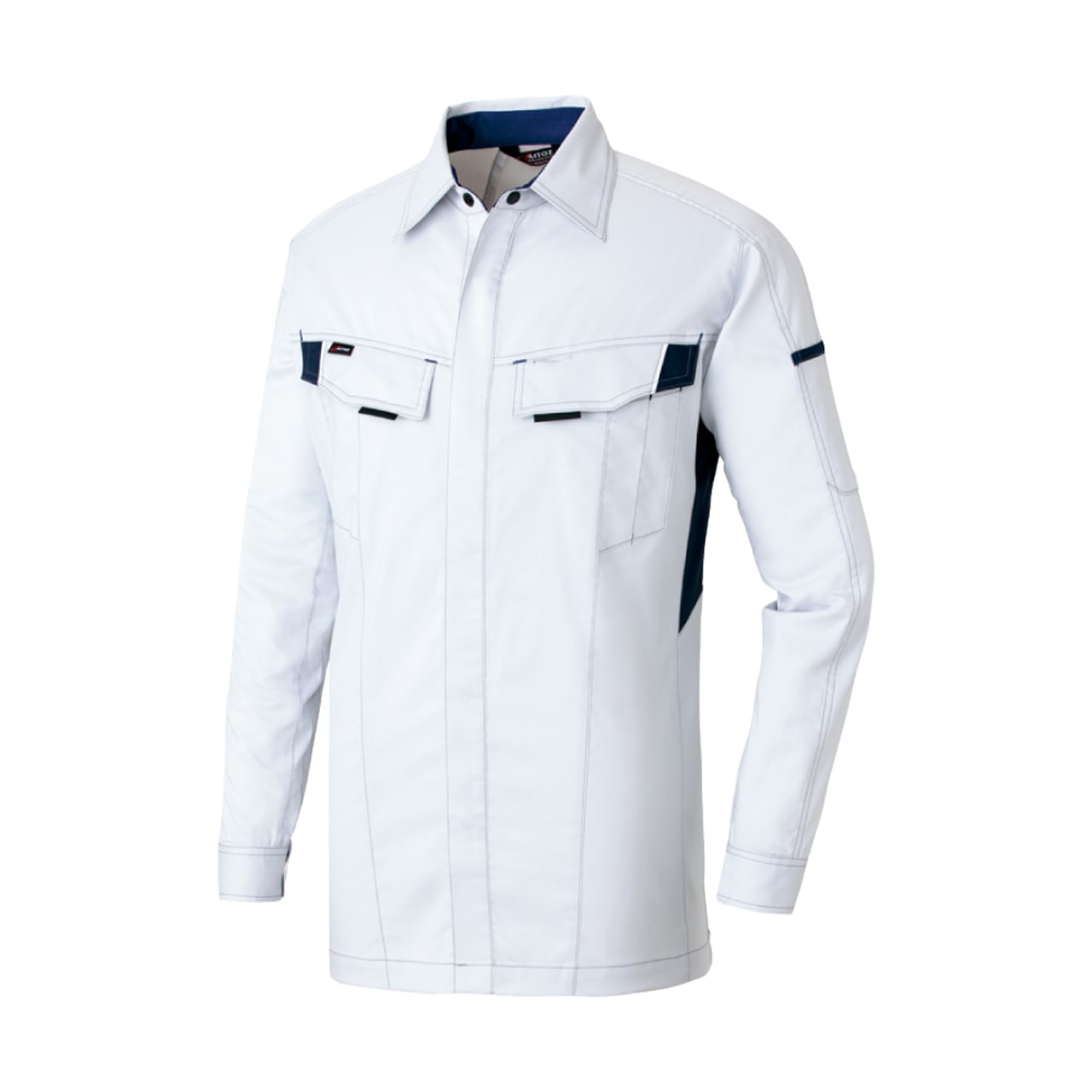 作業時の高い機動性で、お仕事の効率をぐんとアップしてくれるワークシャツです。高いストレッチ性能を誇る、バンジーテックを使用した柔軟性のある生地が動きをアシストしてくれます。また、アイトスオリジナルの生地カッティングであるムービンカットを採用し、動作の自由度をより高めているのも特徴です。脇部分の特殊な生地切り替えによって、腕の上げ下ろしといった大きな動作もラクラク。毎日の作業を安全かつ快適にしてくれるシャツです。