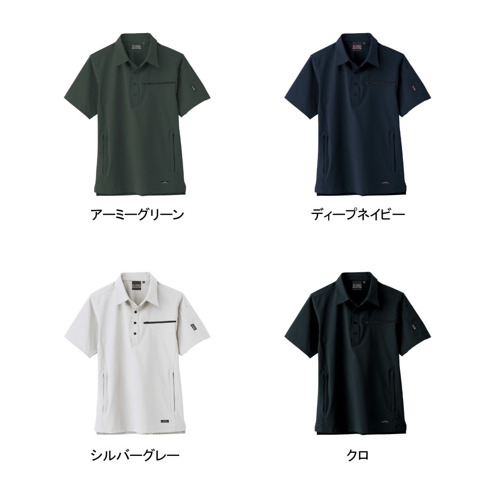 半袖ワークシャツのイメージを刷新する、スタイリッシュなデザインが魅力。襟はぱりっとした印象を与えてくれる、台襟仕様が採用されています。顔周りにきちんと感が出ることで、誠実な雰囲気に。組織や企業のイメージアップにも効果的なウェアです。縦横の二方向にストレッチする生地を使用し、動きに柔軟に追従して動きをアシストしてくれます。カラーはクールなニュアンスを感じられる、落ち着いた4色がラインナップされています。どこかミリタリーなムードで、着る方を一気にこなれたスタイルに。