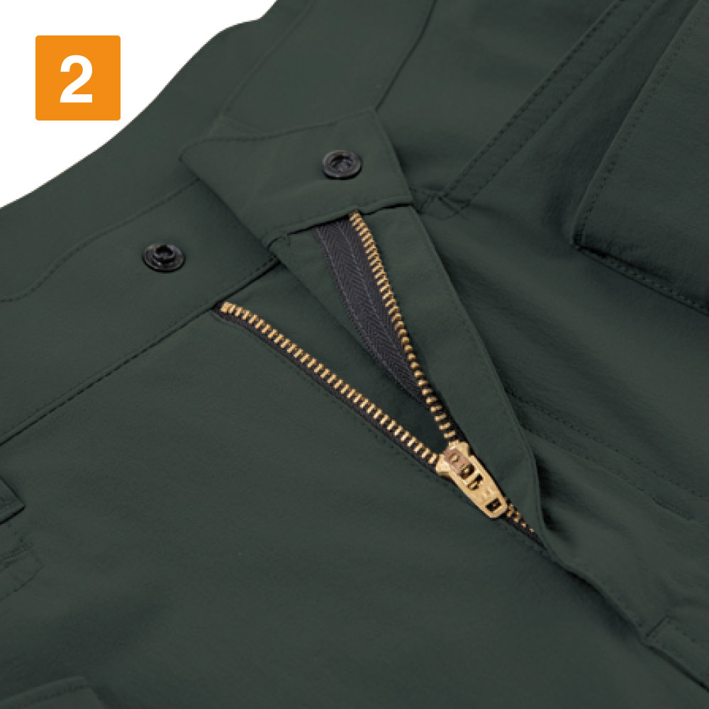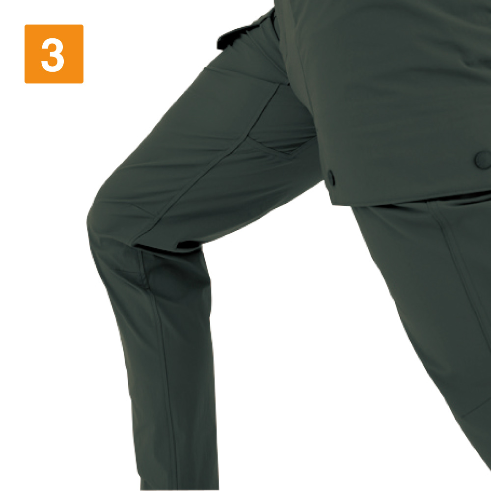 毎日の作業を支えるタフさもしっかり備えたパンツです。生地は摩擦や摩耗に強いコーデュラストレッチが採用され、過酷な現場作業でも破損しにくいのが特長。開閉時に大きな負荷のかかるフロントファスナーには丈夫な3YG金属ファスナーが使用されており、こちらも高い耐久性を実現しています。また、快適な作業をアシストする機能として、生地の持つ高い接触冷感性で肌触りは常にひんやり。暑い季節でも心地よくお過ごしいただけます。さらに生地は軽量なので、疲労感を感じにくいのもポイントです。