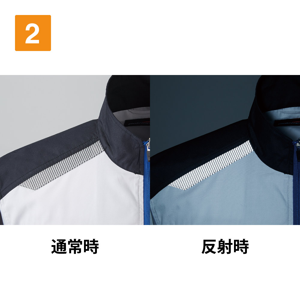 | □携帯電話収納ポケット □左袖ペン差し □反射テープ |