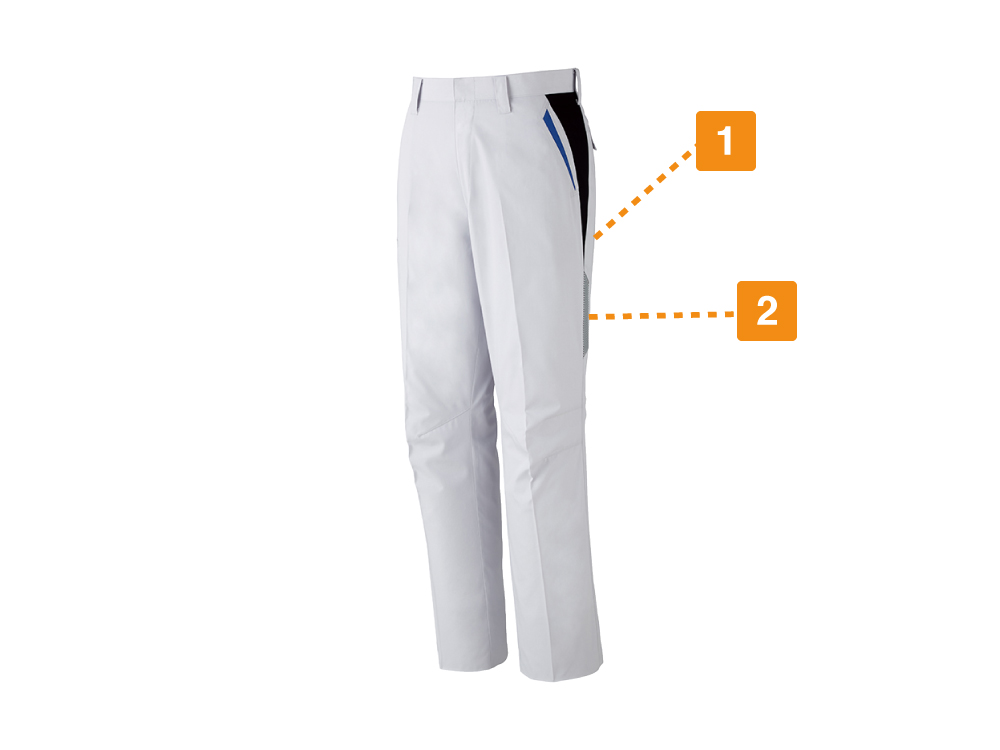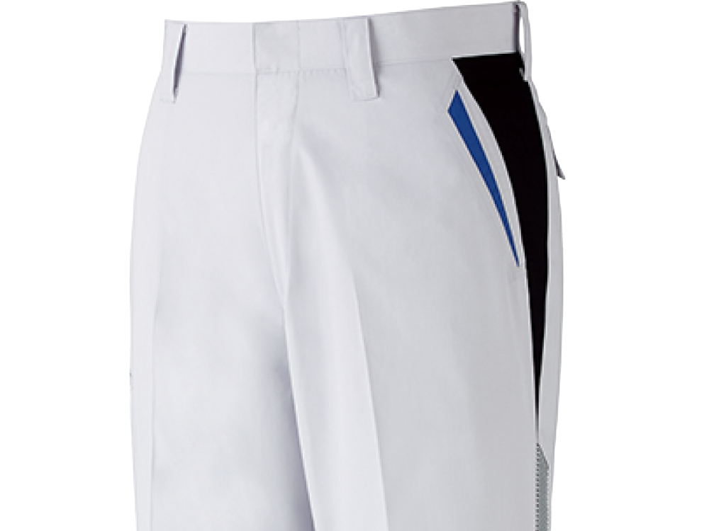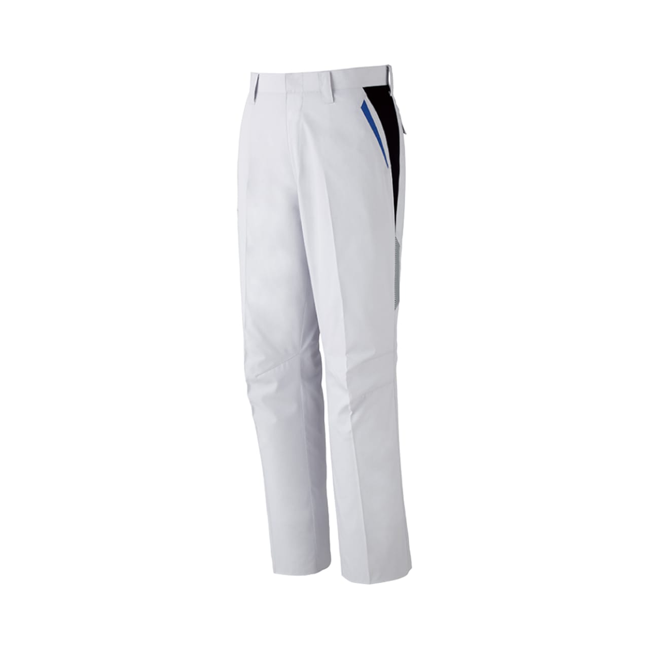 どなたにも着ていただけるシンプルなデザインに、カラーの切り替えでアクセントを加えたスタイリッシュなパンツです。本体カラーの上にあしらわれたファスナーとアクセントの生地切り替えが、他とは違う洗練された個性をプラスしてくれます。また、生地の持つ性能も優れており、抗ウイルス加工によって、衛生面にシビアな環境でも安心して着用いただけます。また、帯電防止素材を使用しているので、冬場など不快な静電気の発生を防ぎ、一日中快適にお過ごしいただけます。