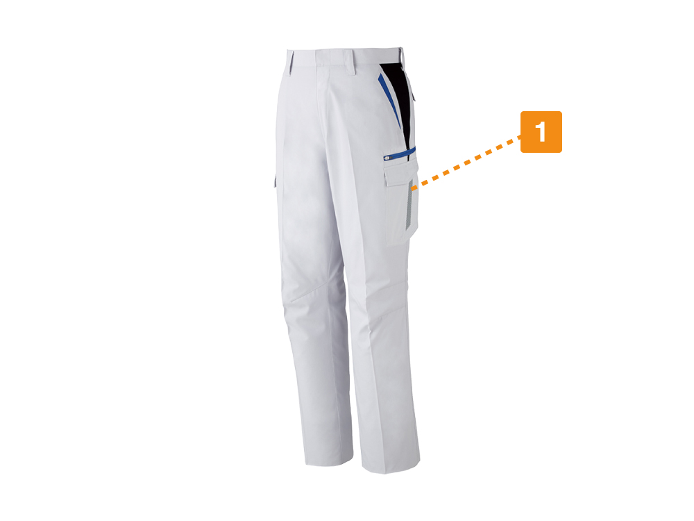 シンプルなカーゴパンツに、ハイセンスなカラー切り替えでアクセントを施したスタイリッシュな一着です。爽やかで今らしい3色のカラーを巧みに使い分け、出会う方に好印象を与えるスタイルを実現しています。また、生地の持つ優れた性能でも選ばれているパンツ。抗ウイルス加工が施されており、衛生面で気を遣う現場でも安全に着用いただけます。また、帯電防止性能を備えており、不快な静電気をカット。生地のまとわりつきなどのストレスを低減してくれます。
