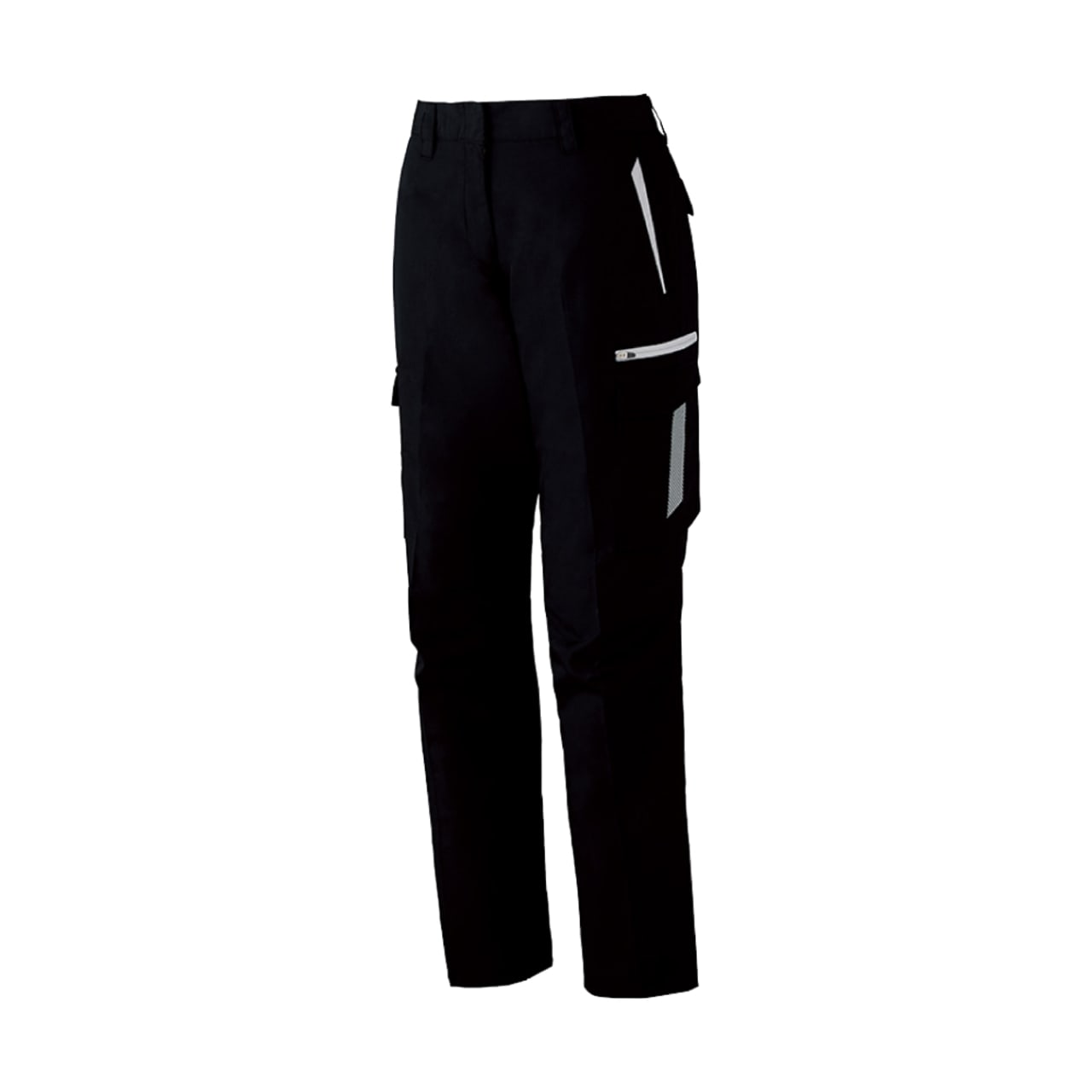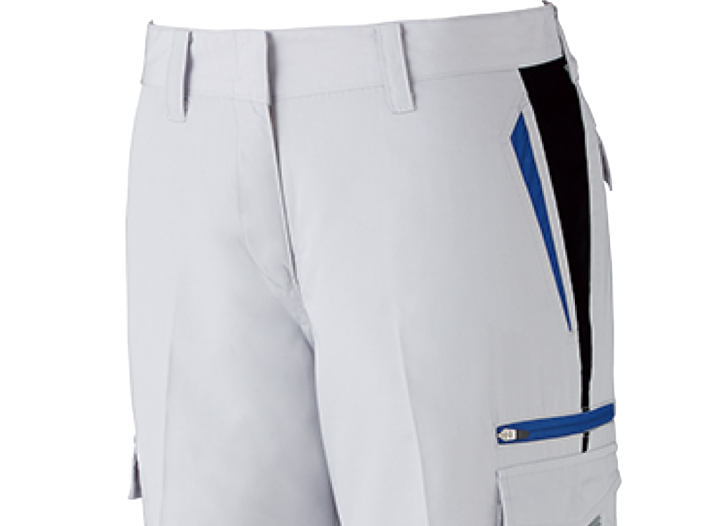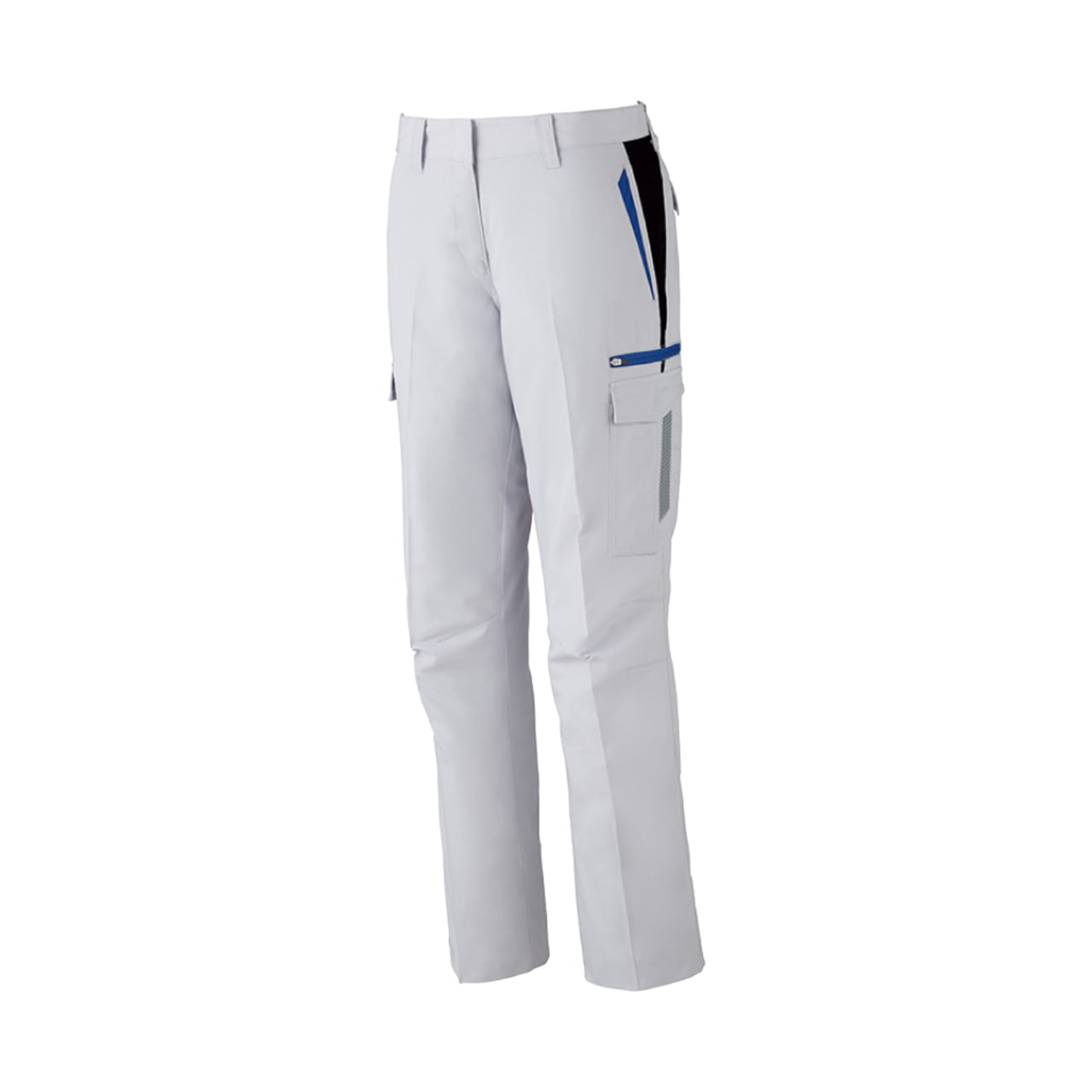 女性の体型を考慮し設計されたシルエットで、着姿をとても美しく見せてくれるモデルです。ウエストはしっかりフィットしつつ、太ももまわりにゆとりをもたせることで動きやすさもアップしています。メインカラーの上に、ファスナーカラーとアクセントの生地切り替えカラーが施されたデザインもポイント。すっきりしながら存在感のある一着になっています。機能面では、帯電防止性能や抗ウイルス性能を備えており、さまざまな環境で安全に着用できる一着になっています。