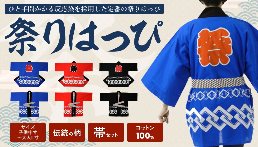 伝統の祭りはっぴ。サイズ豊富です。