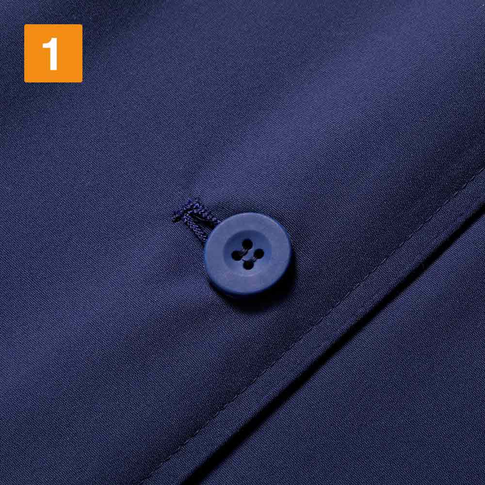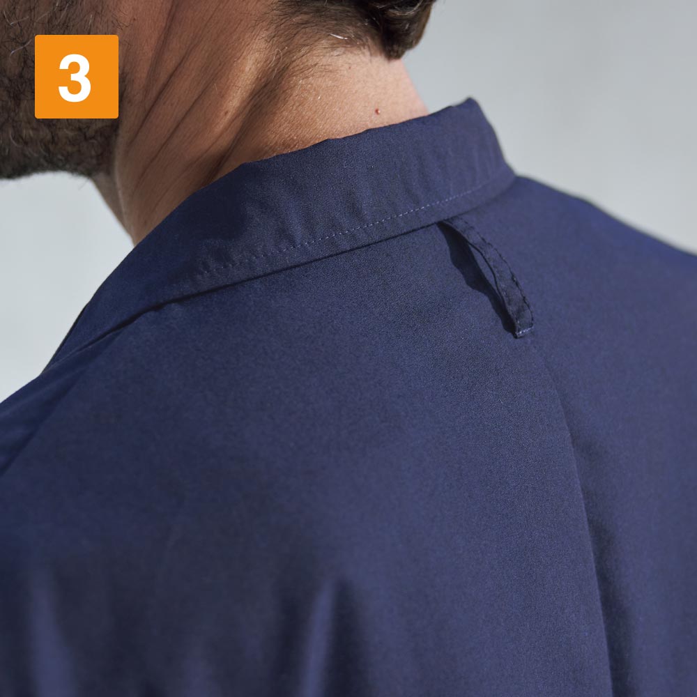 医療用ウェアとして、生地にもこだわり抜かれた一着です。本体生地に採用されているのは、ジアポプリン。厚生労働省によるガイドラインに沿って開発された、感染症対策用の素材です。次亜塩素酸ナトリウムに対して劣化しにくい特性を持ち、色抜けが生じないなどまさに今の時代に最適な素材。また、高い吸水性と拡散性を備え、汗などをかいても不快感が少ないのも特長です。さらに、製造過程でのCO2排出量や水の使用量を低減しているなど、エコロジーの観点からも優れたウェアになっています。