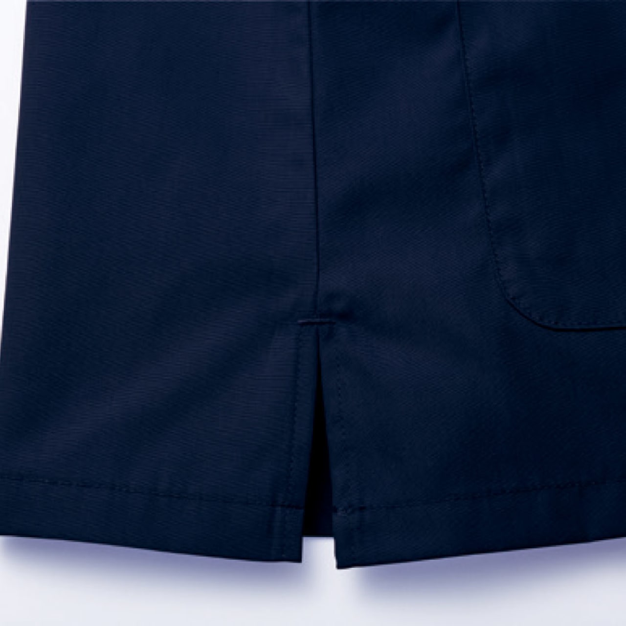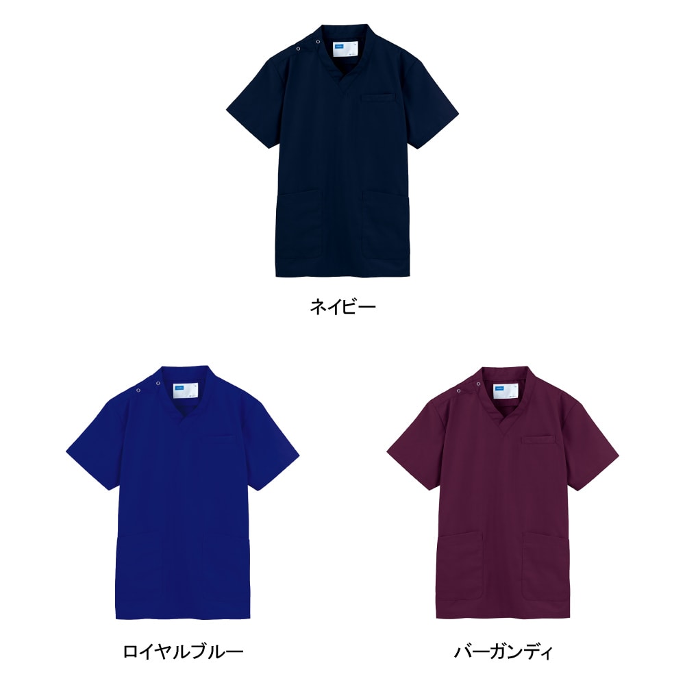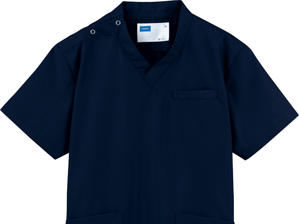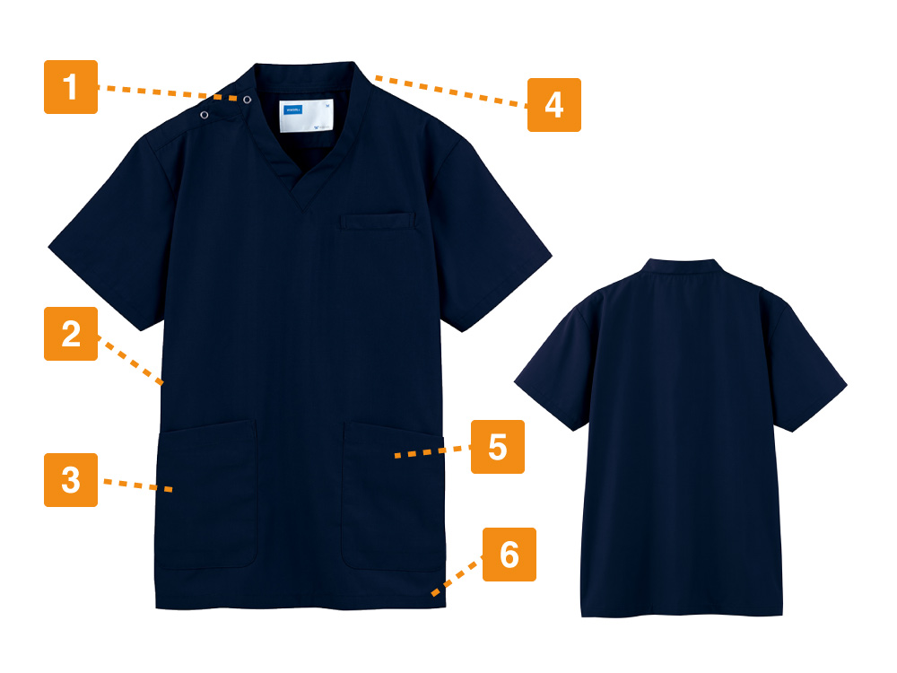 抗ウイルス加工、制菌加工、抗菌防臭加工の3分野でSEKマークを取得したまさに医療現場のための一着になっています。シンプルながらこだわりを感じる設計もポイント。首まわりはすっきりとしたVネックデザインになっています。襟にやや立ち上がりがあることで、首にストラップが接しないので、肌にやさしく衛生的です。また、裾の両脇にスリットが設けられているので、腰回りのつっぱり感をなくし動きやすさをアップ。高い機動性が求められる現場にもぴったりです。