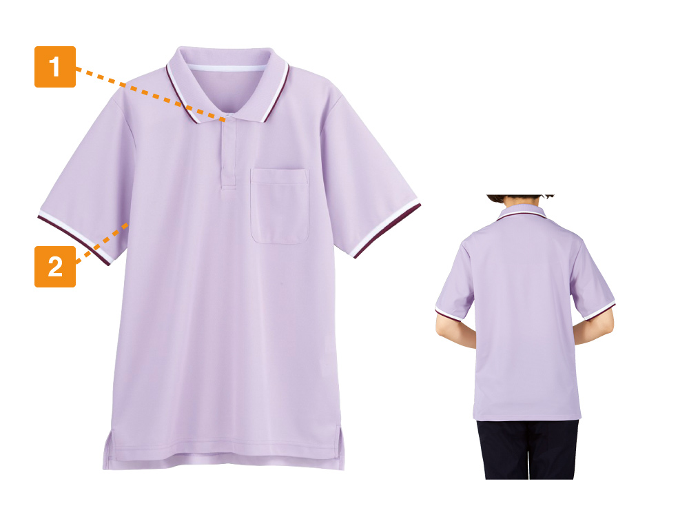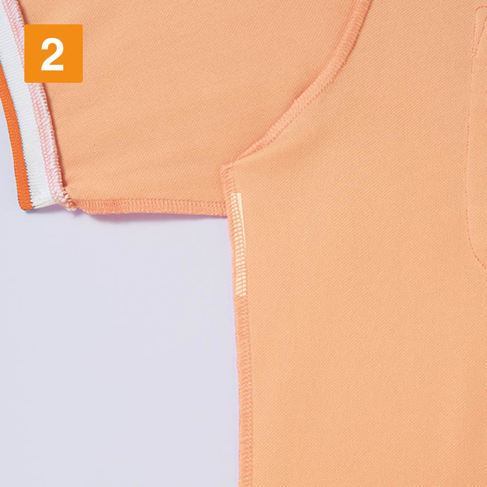 シンプルながら、作業を支える機能面も充実したポロシャツです。肩と脇下部分には、気になる汗対策として抗菌・消臭効果を備えたDEOテープが配置されています。不快な臭いを軽減しつつ、一日中清潔な状態をキープ。人との接近が多いお仕事でも、気にすることなく作業が行えます。また、安全面を考慮し、襟元には凹凸のないテープ式のボタンが採用されています。ひっかかりなどの心配がなく事故の心配を抑え、着脱もスムーズに行っていただけます。