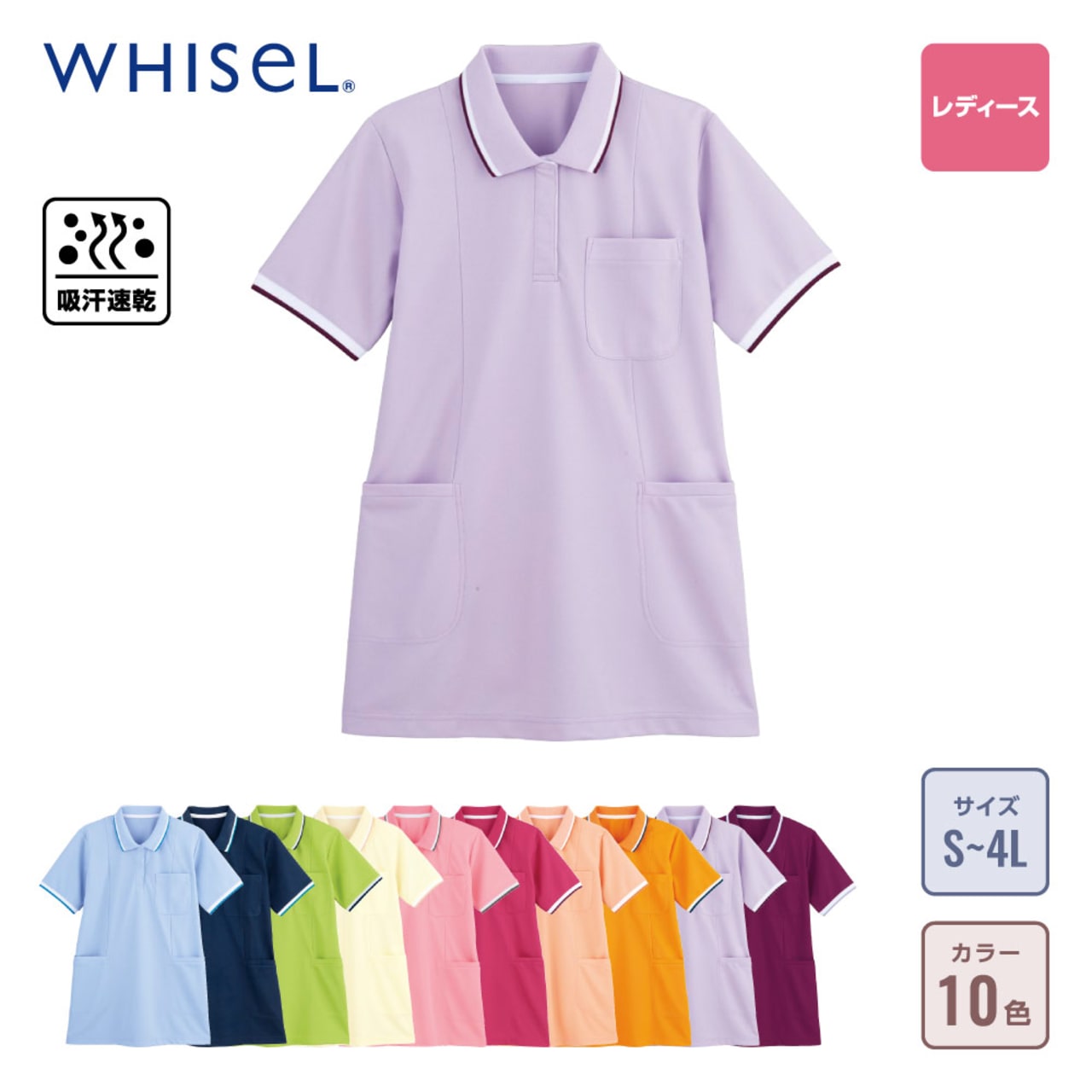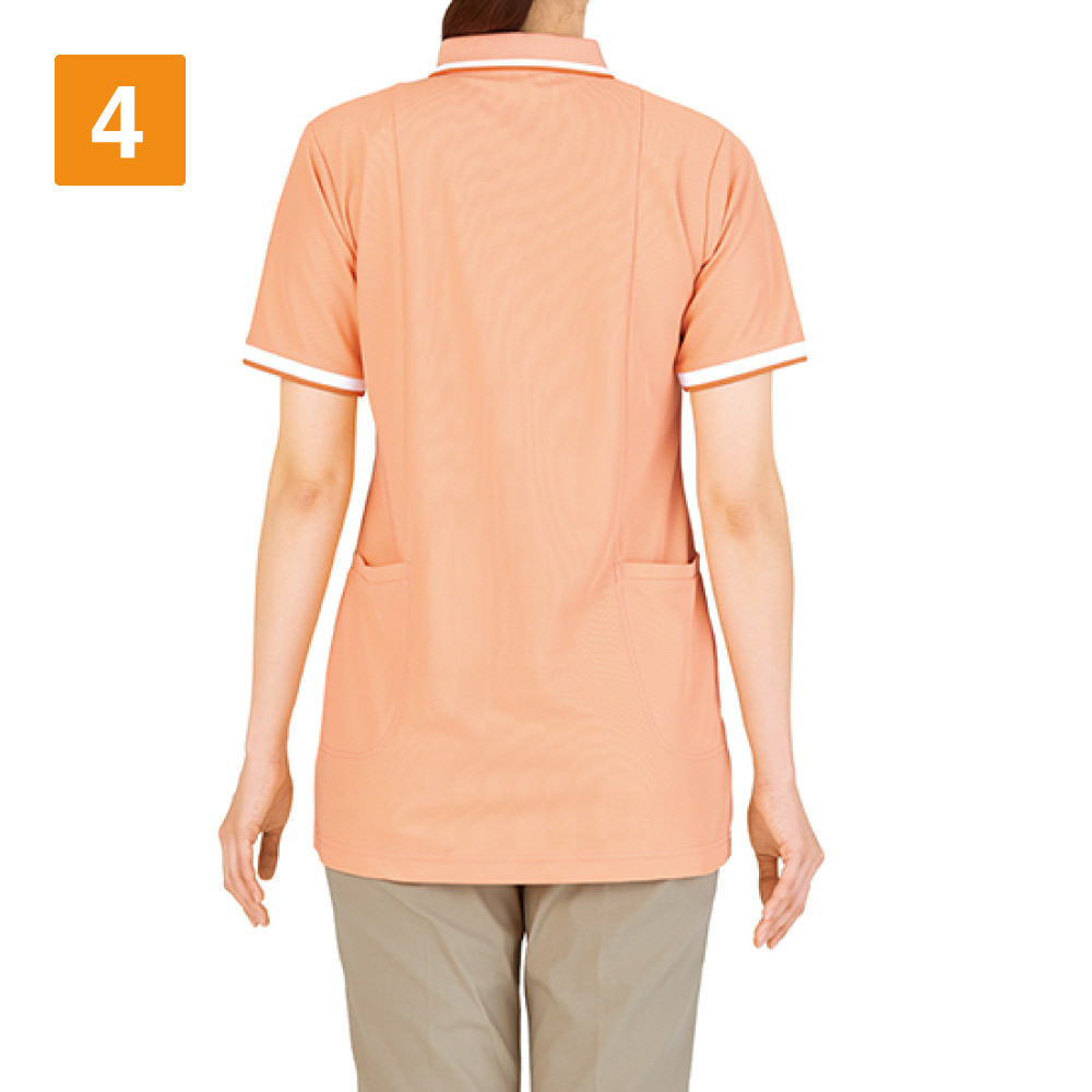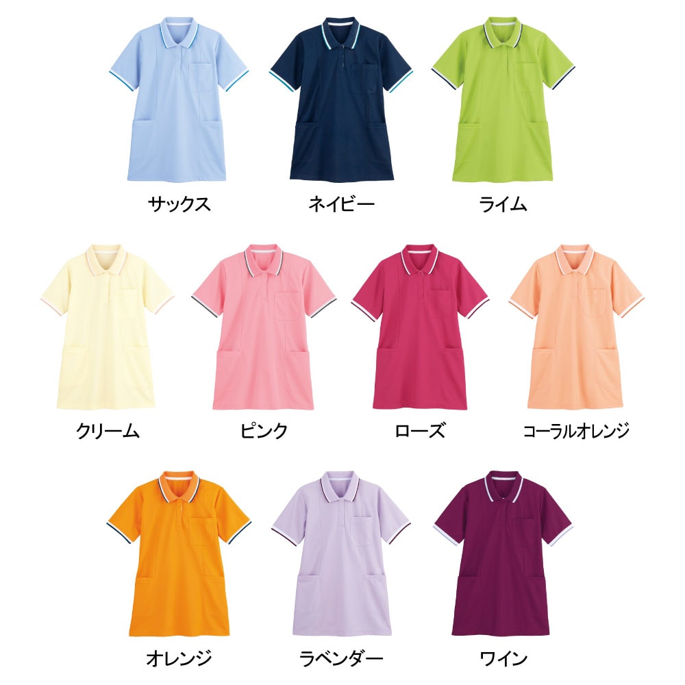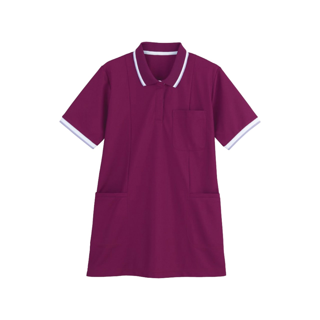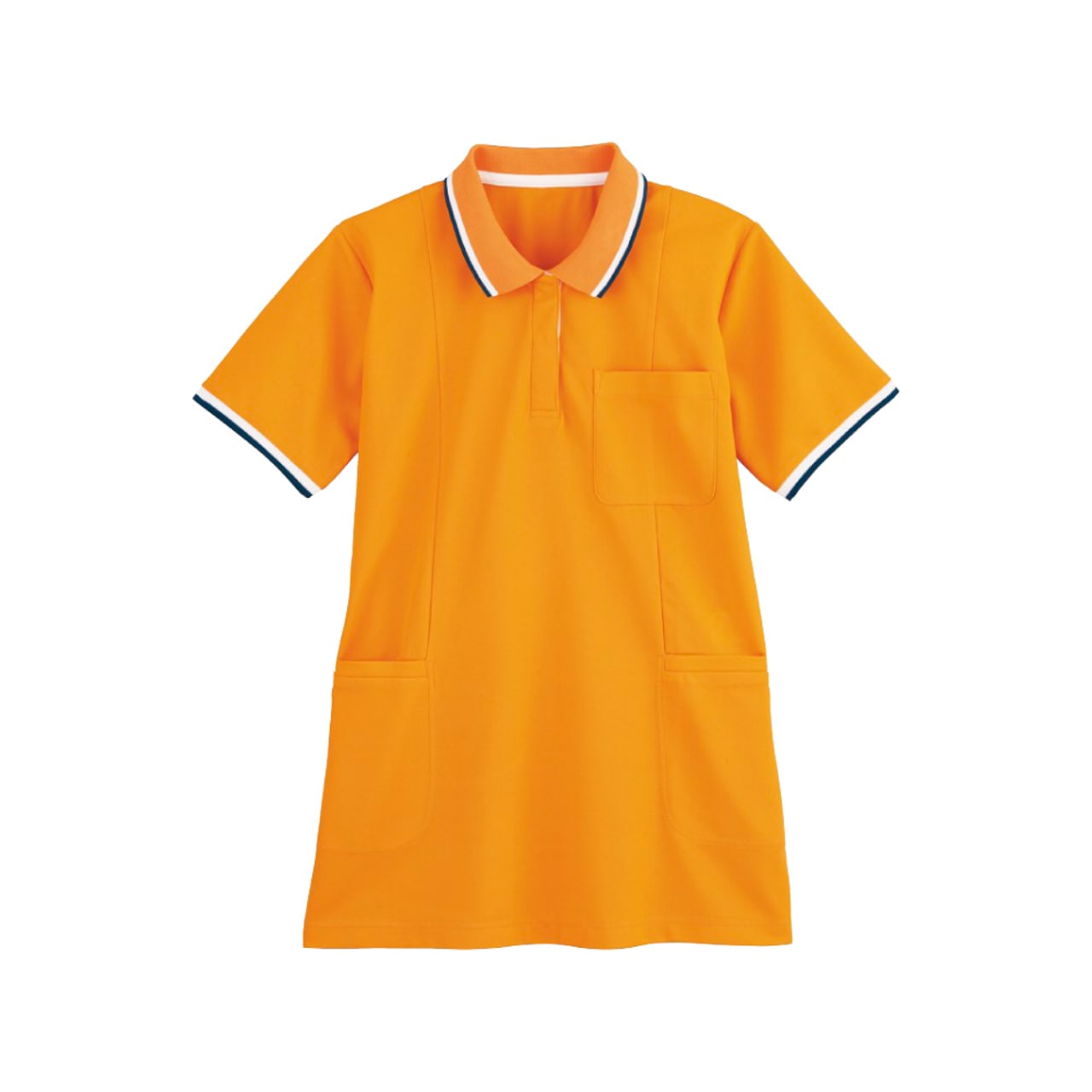 シンプルな定番デザインが人気のポロシャツです。特徴はヒップまでしっかりカバーできるロング丈。体型カバーできるだけでなく、前屈などの姿勢でも背中の露出を防ぎます。また、ロング丈を生かした、胸ポケットに加え両脇の前後に計4つの脇ポケットを備えた超大容量収納もポイント。何かと増えがちな小物もすっきりと収納可能です。襟と袖口のリブにはアクセントカラーが入り、スポーティな印象をプラス。はつらつとした元気な印象を与えてくれる一着になっています。