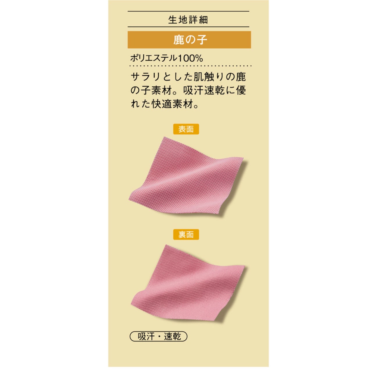夏の暑さの中でのお仕事を快適にしてくれる、生地選定もポイントのポロシャツです。本体生地には、ポロシャツでの採用も多い鹿の子が使用されています。表面に凹凸のある、さらりとした質感が心地いい素材で、体への張り付きも少ないのが特長です。また、汗をかくお仕事には必須の吸汗・速乾性を備えており、いつも着心地はからりと爽やか。ポリエステル100%なのでお洗濯もしやすく、着て洗ってを繰り返し、タフに着回せる一着になっています。