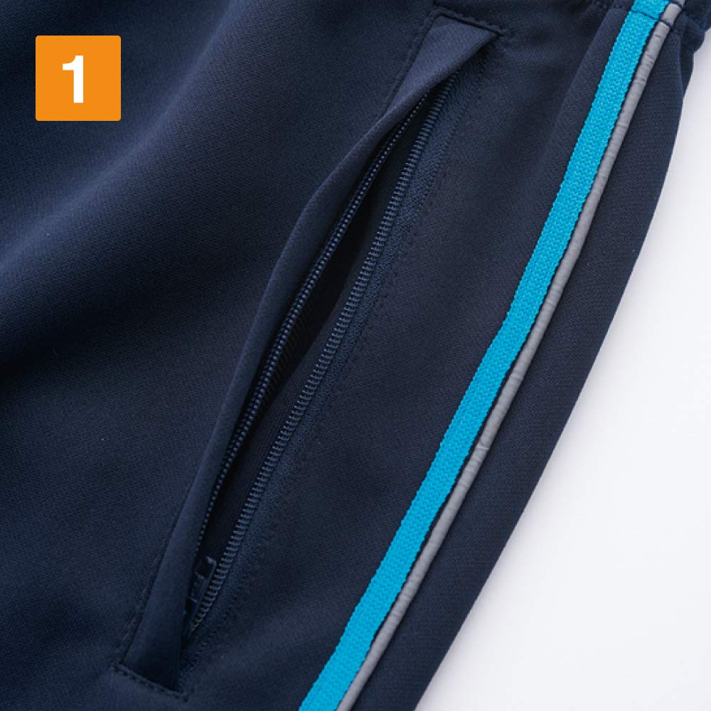 こだわりのディテールデザインにも注目のパンツ。サイドのライン部分にはアクセントとなる反射プリントが施されています。夜間の視認性をアップし、時間帯を問わず安全にお過ごしいただけるディテールです。また、ウエストが総ゴムなので、どなたのウエストにも心地よくフィット。ひもによる調整も可能で、一人ひとりのお好みに合わせたフィット感で着用いただけます。収納面では、左脇にファスナー付きポケットが配置されており、貴重品などの落下を防止。体勢を気にすることなく作業いただけます。