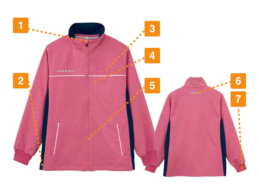 | □反射パイピング □ニットテープ □左ポケットファスナー付 |