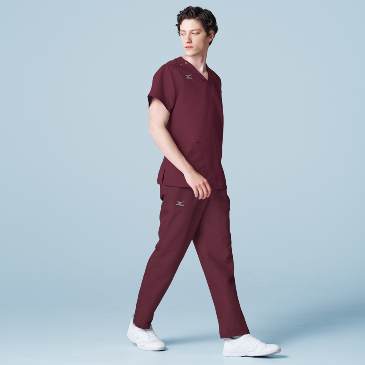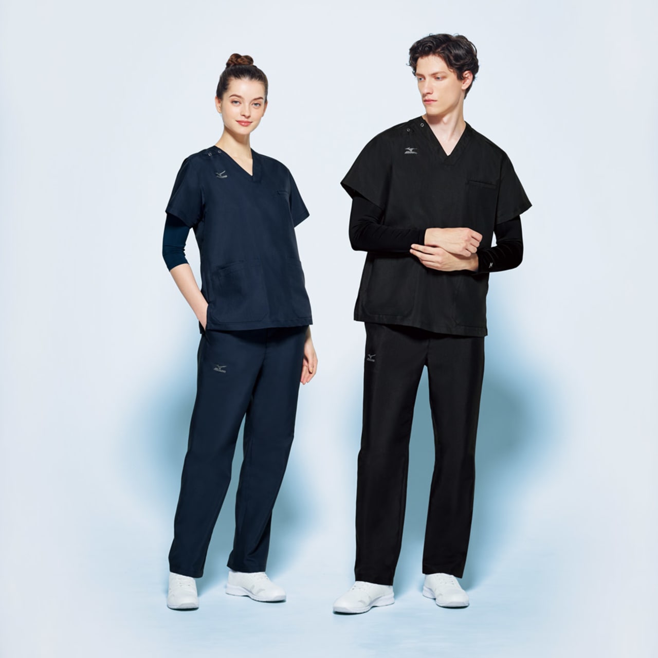 抗ウイルス加工の施された、クリーンなスクラブ。医療現場での着用に寄り添って開発された一着です。無駄のないすっきりとしたデザインで、見た目にも清潔感を感じられるウェアになっています。また、動きやすさを追及したウェア構造である「Mizuno Dynamotion Fit」が採用されており、脇下にゆとりを持たせることで腕周りの動きがスムーズに。腕の上げ下ろしのような大きな動きもストレスを感じさせません。さらに、生地は制電性能を備えているため、不快な生地のまとわりつきやホコリの付着を防いで、快適にお過ごしいただけます。